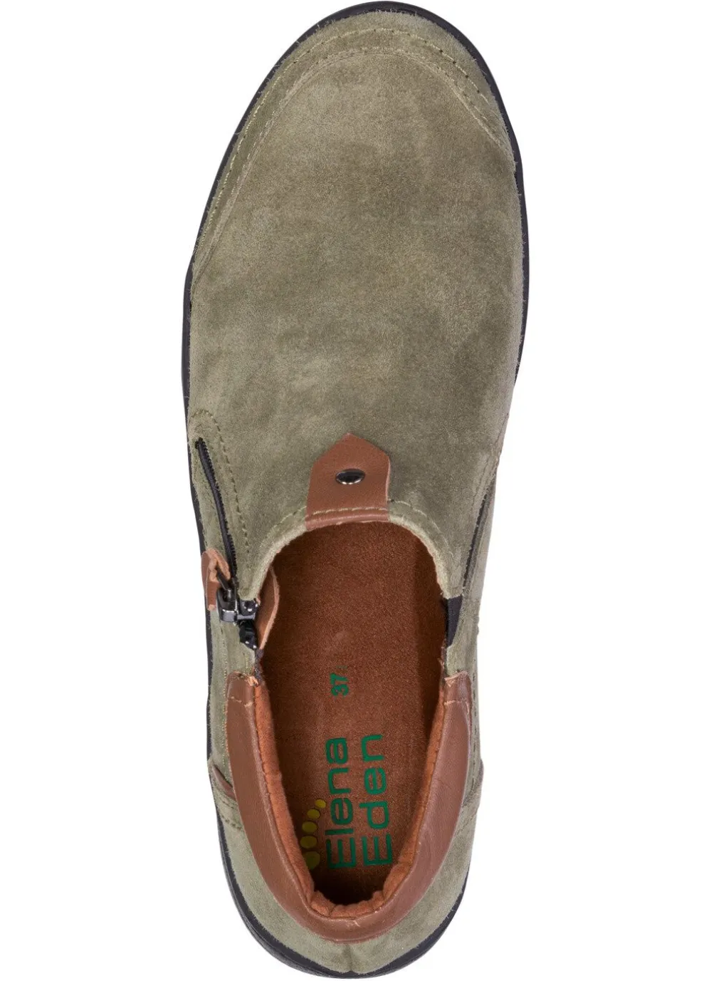 Boots von ELENA EDEN, aus Rind-Veloursleder, mit Kontrast-Besätzen aus Nappaleder und seitlichem Elastikeinsatz: Weite H, Seitenreißverschluss, Textilfutter, herausnehmbares Fußbett, leichte TR-Profilsohle sowie 15 mm Keilabsatz. Schafthöhe ca. 7 cm