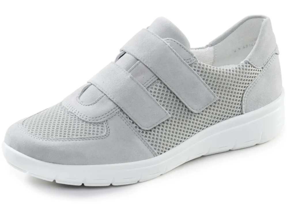 Klettschuhe von ELENA EDEN aus weichem Veloursleder und Mesh-Material: Weite H, Textilfutter, herausnehmbares Frottee-Fußbett, leichte PU-Luftpolster-Profilsohle sowie 15 mm Keilabsatz