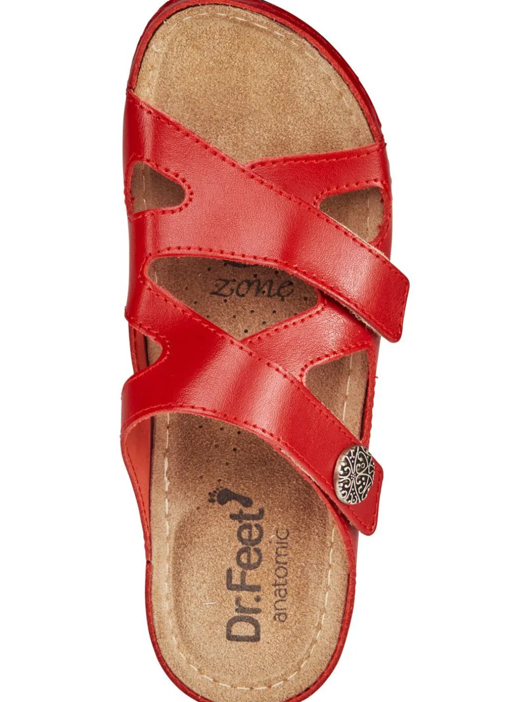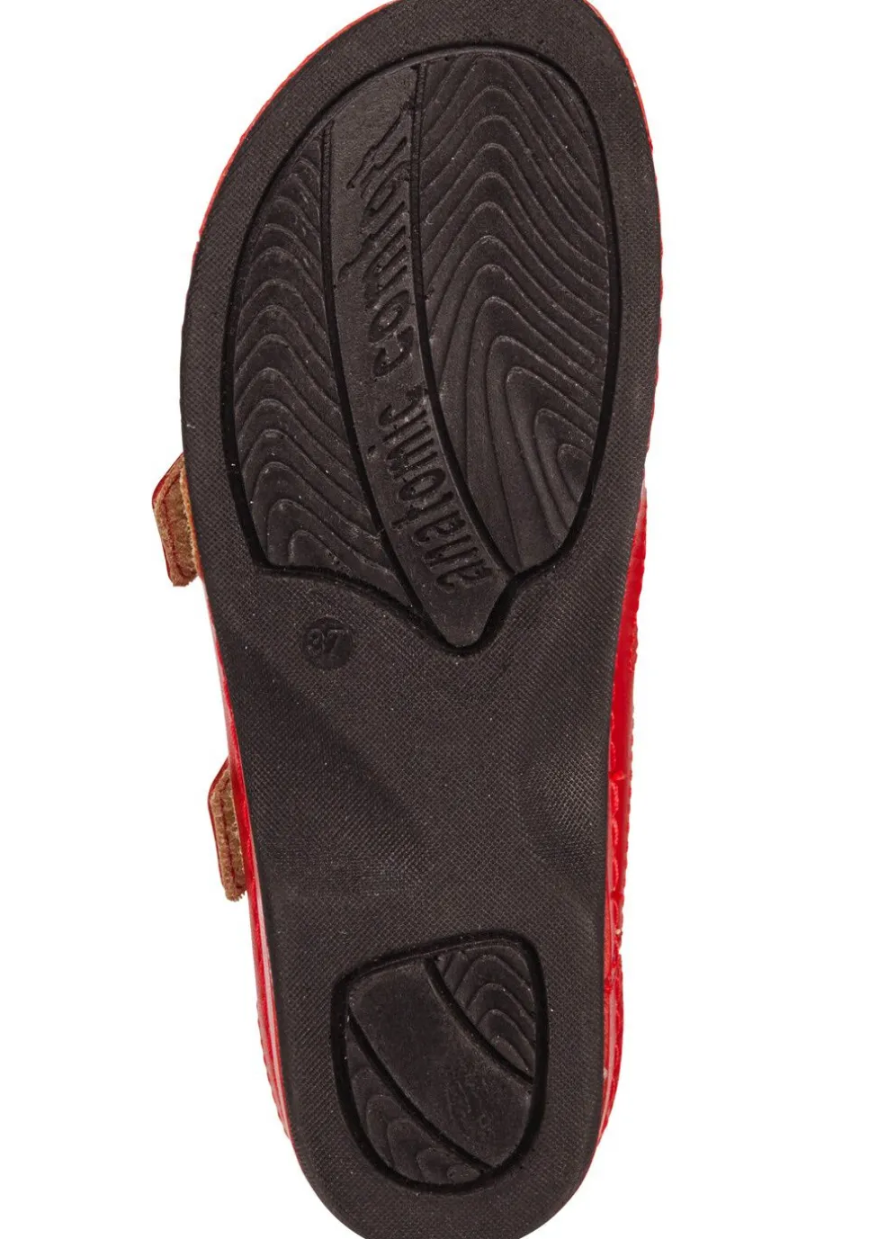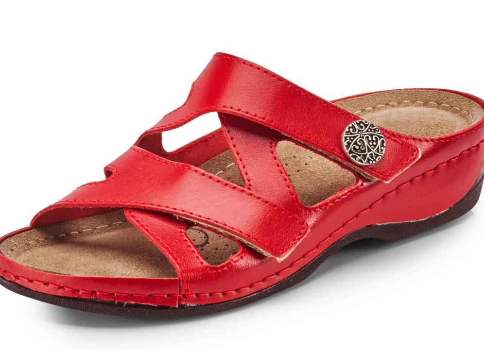 Pantoletten von ELENA EDEN, aus Rind-Nappaleder: in Weite G, zwei verstellbare Klettspangen, gepolstertes Lederfußbett mit Pelotte und Gelenkstütze, leichte PU-Riffelsohle und 30 mm Keilabsatz