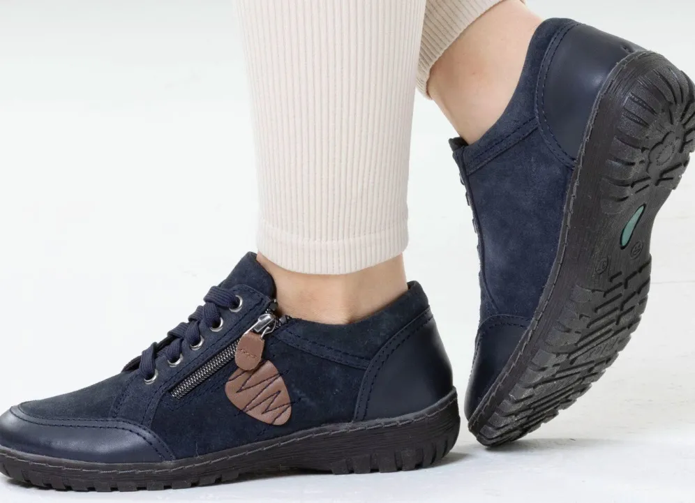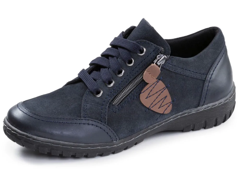Schnürschuhe von ELENA EDEN, aus Leder-Materialmix, mit Leder-Applikation und gepolstertem Schaftrand: Weite G, seitlicher Reißverschluss, Futter, herausnehmbares Fußbett, leichte TR-Profilsohle sowie 15 mm Keilabsatz
