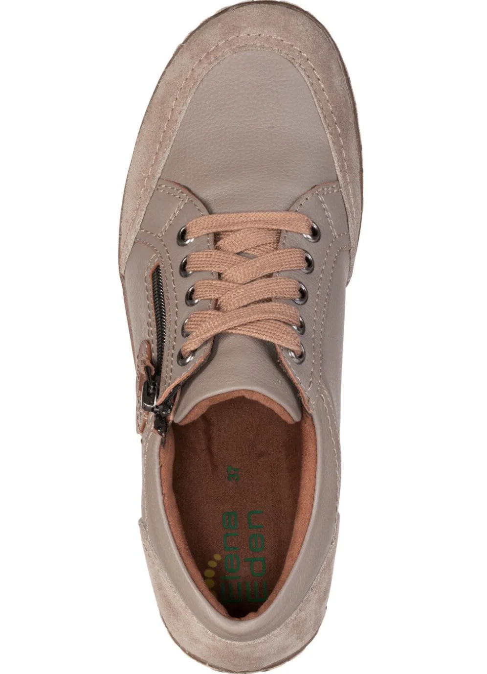 Schnürschuhe von ELENA EDEN, aus Leder-Materialmix, mit Leder-Applikation und gepolstertem Schaftrand: Weite G, seitlicher Reißverschluss, Futter, herausnehmbares Fußbett, leichte TR-Profilsohle sowie 15 mm Keilabsatz
