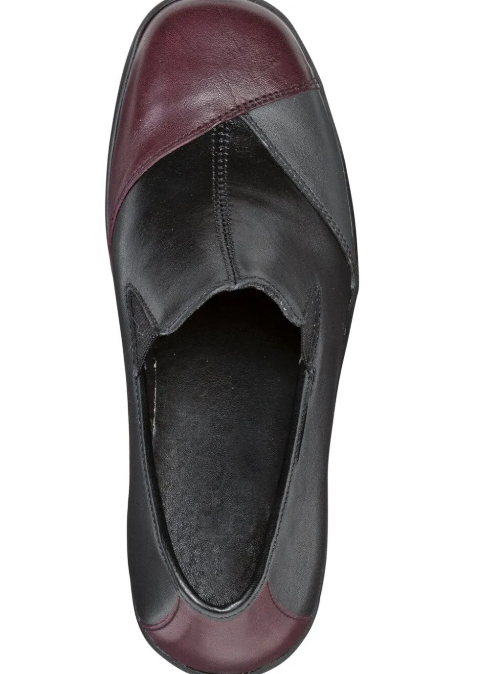 Slipper von ELENA EDEN, aus Nappaleder in Schwarz-Chianti-Grau: Weite H, zwei seitliche Gummizüge, Textilfutter, herausnehmbares Lederfußbett, leichte PU-Riffelsohle, 35 mm Keilabsatz