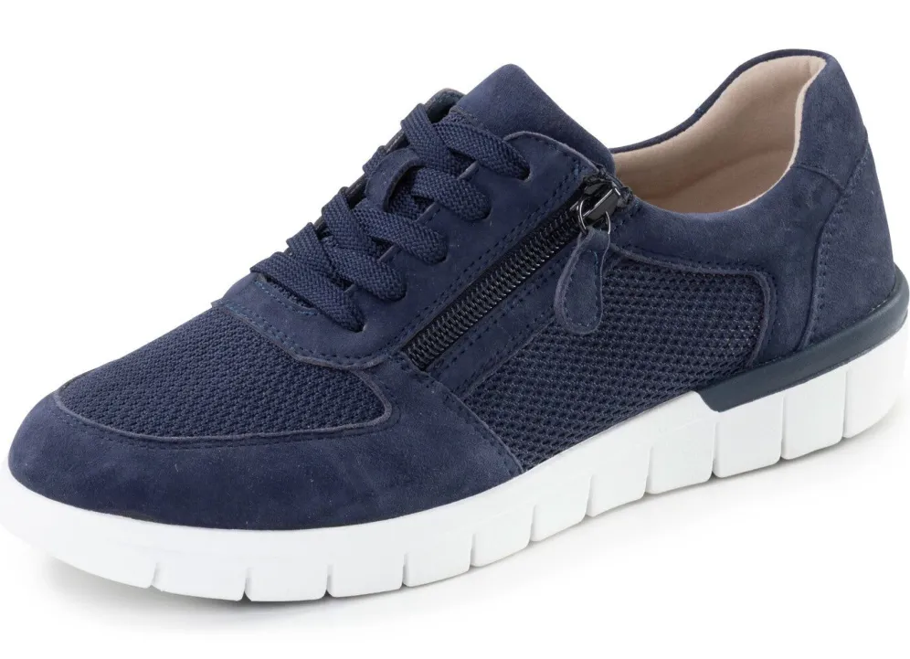 Sneaker von ELENA EDEN aus Nappa- oder Veloursleder und luftigen Mesheinsätzen, mit seitlichem Reißverschluss: Weite H, Schnürung, gefüttertes Quartier, herausnehmbares Lederfußbett, leichte TPR-Profilsohle sowie 15 mm Keilabsatz