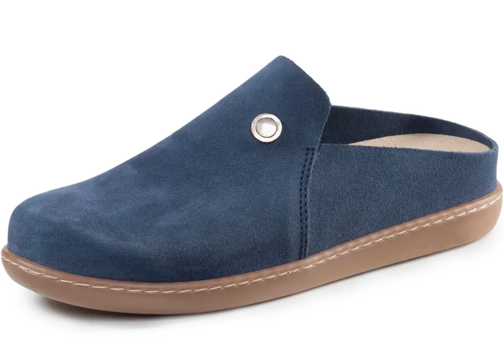 ELENA EDEN-Clog aus Veloursleder: herausnehmbares Lederfußbett, leichte TR-Laufsohle sowie 20 mm Keilabsatz