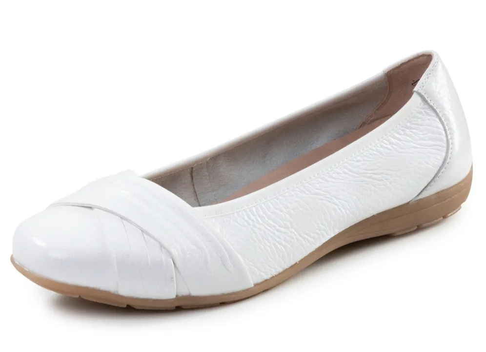 Edle Ballerinas von ELENA EDEN aus weichem, genarbtem Hirsch-Nappaleder, mit Rundumgummizug und dekorativer Spange: Weite G, herausnehmbares Lederfußbett, leichte TPR-Laufsohle sowie 15 mm Keilabsatz