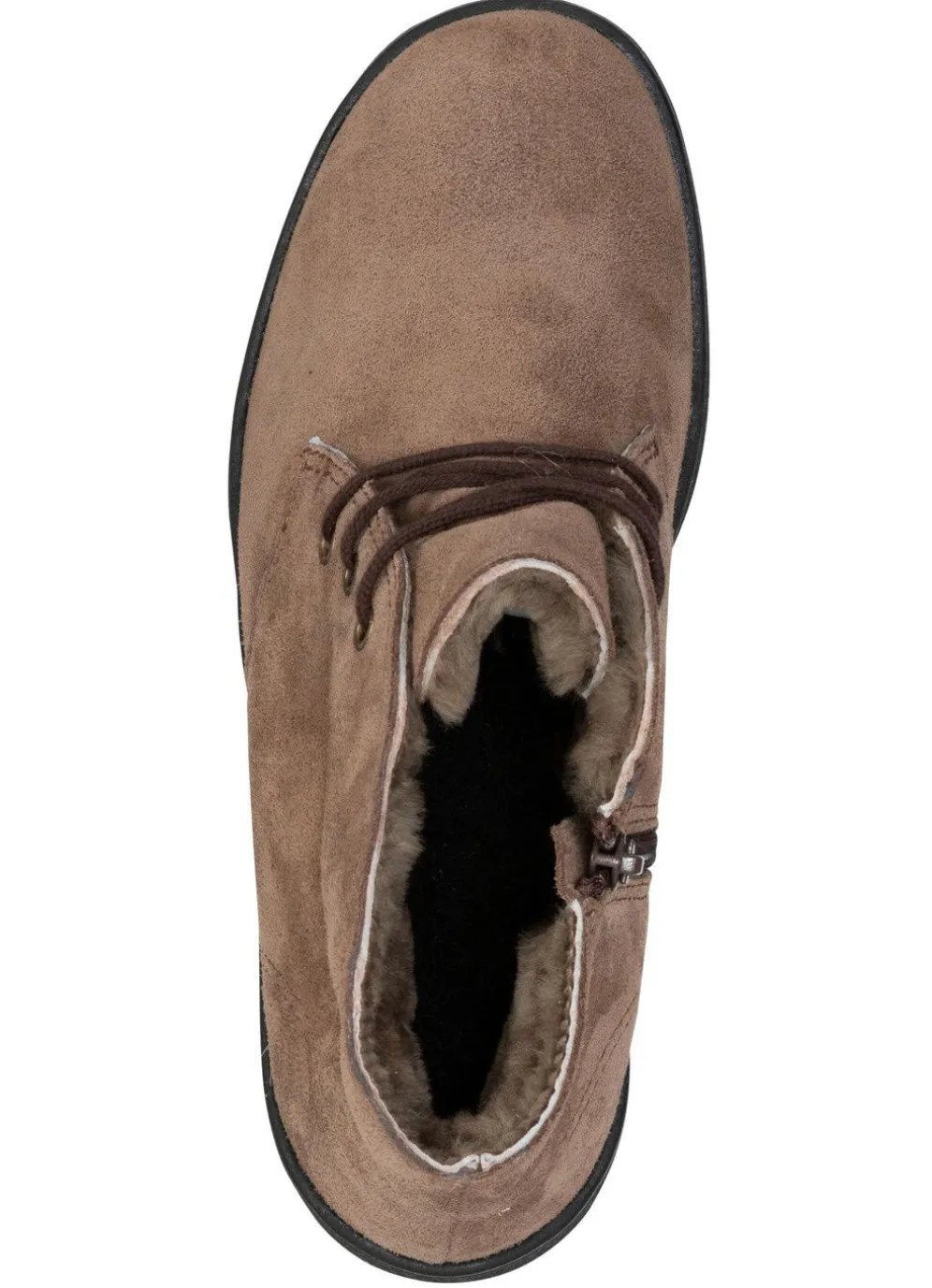 Boots von ELENA EDEN aus bestem Veloursleder, mit Schnürung und Innenreißverschluss: Weite H, kuscheliges Warmfutter aus echtem Lammfell, warme Wolldecksohle, leichte Synthetik-Profilsohle mit 30 mm Keilabsatz. Schafthöhe ca. 10 cm