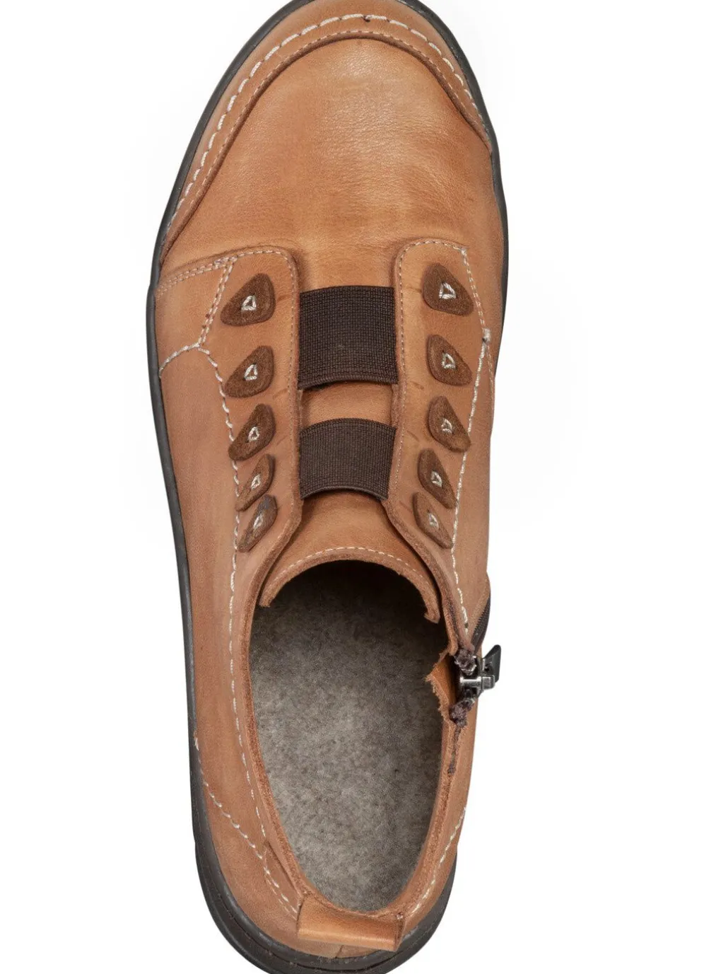 Boots von ELENA EDEN aus schattiertem Nappaleder mit Lederapplikationen und Elastikeinsätzen: Weite H, Innenreißverschluss, wärmendes Textilfutter, herausnehmbares Fußbett, leichte TR-Profilsohle, 15 mm Keilabsatz. Schafthöhe ca. 8 cm