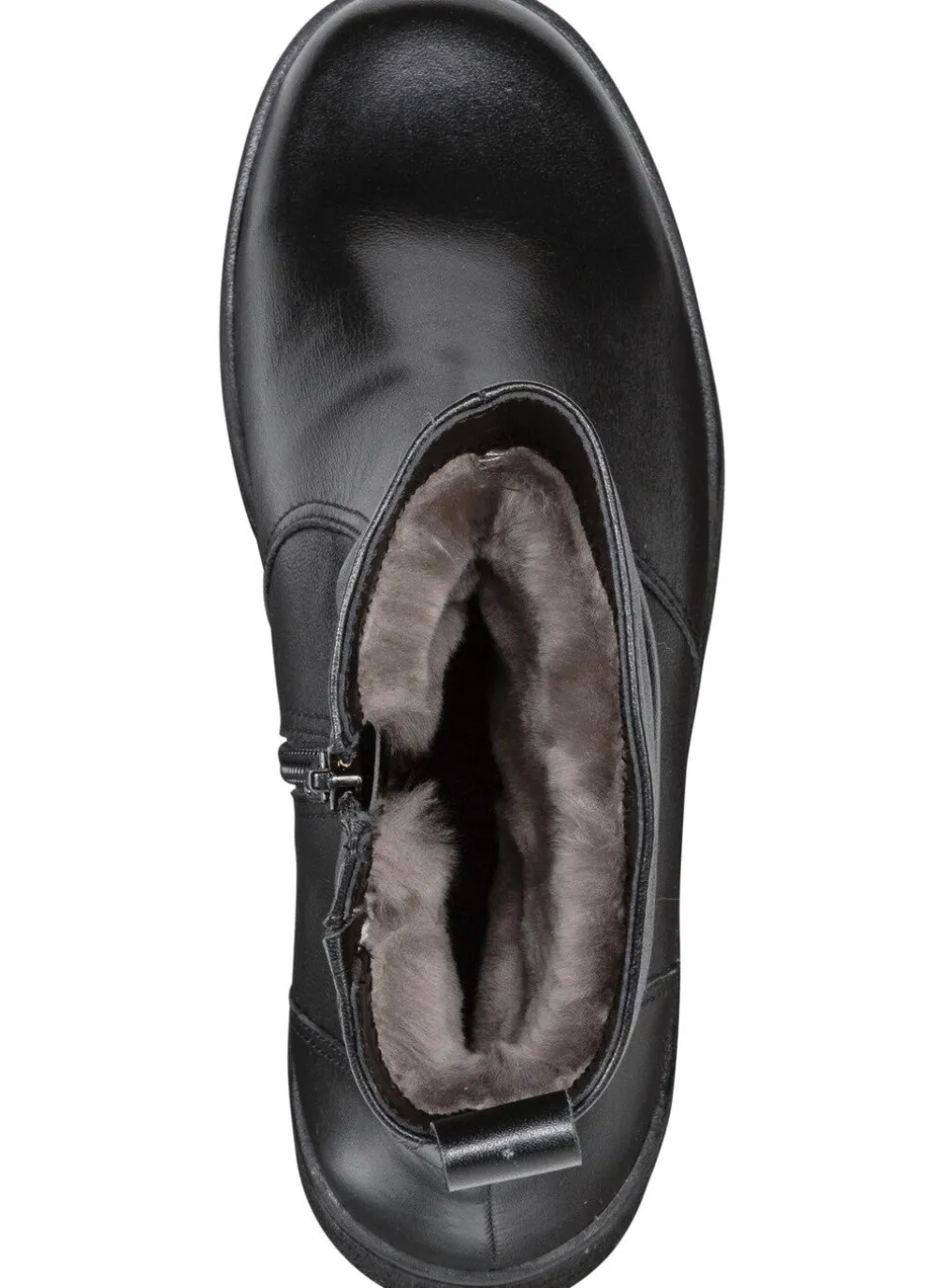 Stiefeletten von ELENA EDEN aus schwarzem Nappaleder, mit aparter Raffung: Weite H, Innenreißverschluss und Elastikeinsatz, echtes, molliges Lammfellfutter, warme Wolldecksohle, leichte Synthetik-Profilsohle sowie 30 mm Keilabsatz. Schafthöhe ca. 18 cm