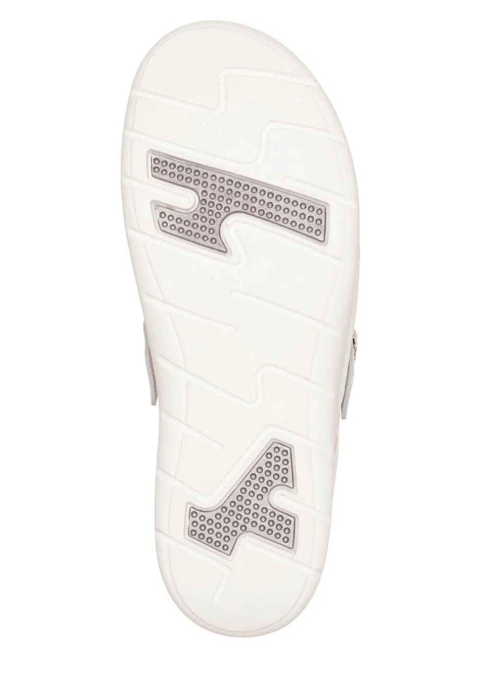 Clogs von ELENA EDEN aus weißem Rind-Nappaleder mit buntem, floralem Druck: in Weite H, verstellbare Spange, herausnehmbares Lederfußbett, PU-Laufsohle sowie 25 mm Keilabsatz