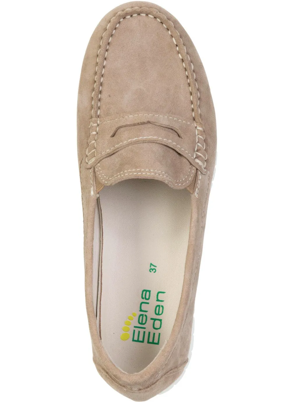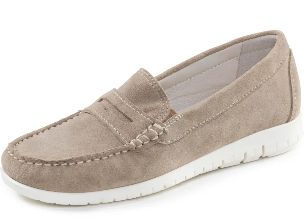 Slipper von ELENA EDEN in Mokassin-Machart, aus weichem Veloursleder mit seitlich eingesetzten Gumizügen: Weite H, Lederfutter, herausnehmbares Lederfußbett, superleichte TPR-Laufsohle sowie 10 mm Keilabsatz