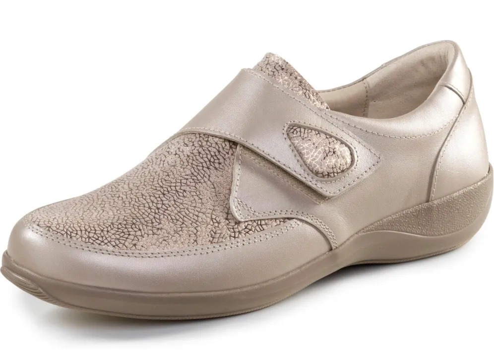 Klettschuh von ELENA EDEN, aus schimmerndem Nappaleder und glanzend geprägtem Elastikmaterial : Weite G, Futter, herausnehmbares Fußbett, TR-Profilsohle sowie 20 mm Keilabsatz