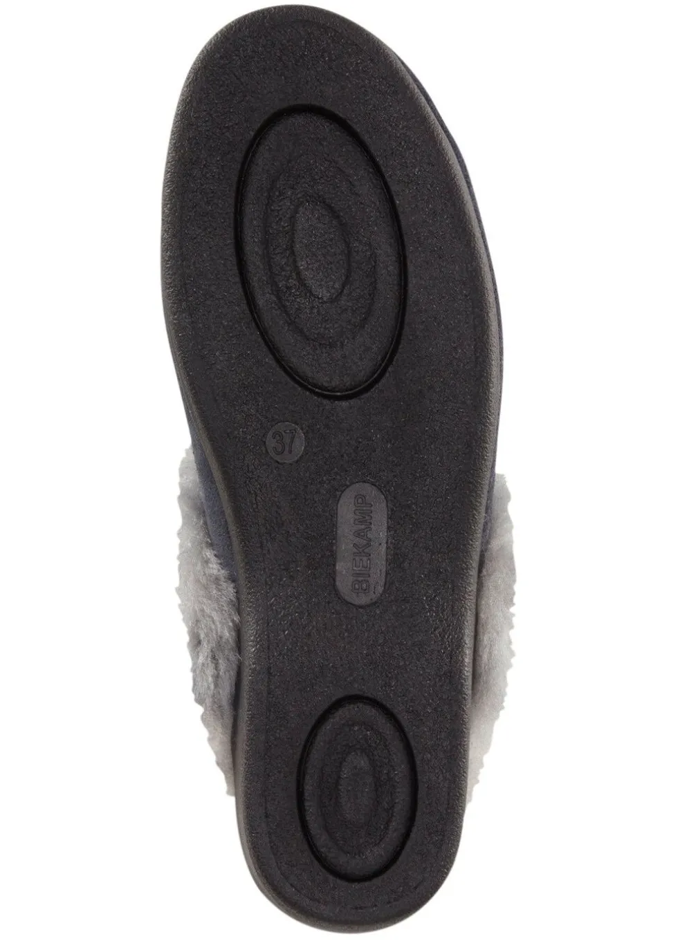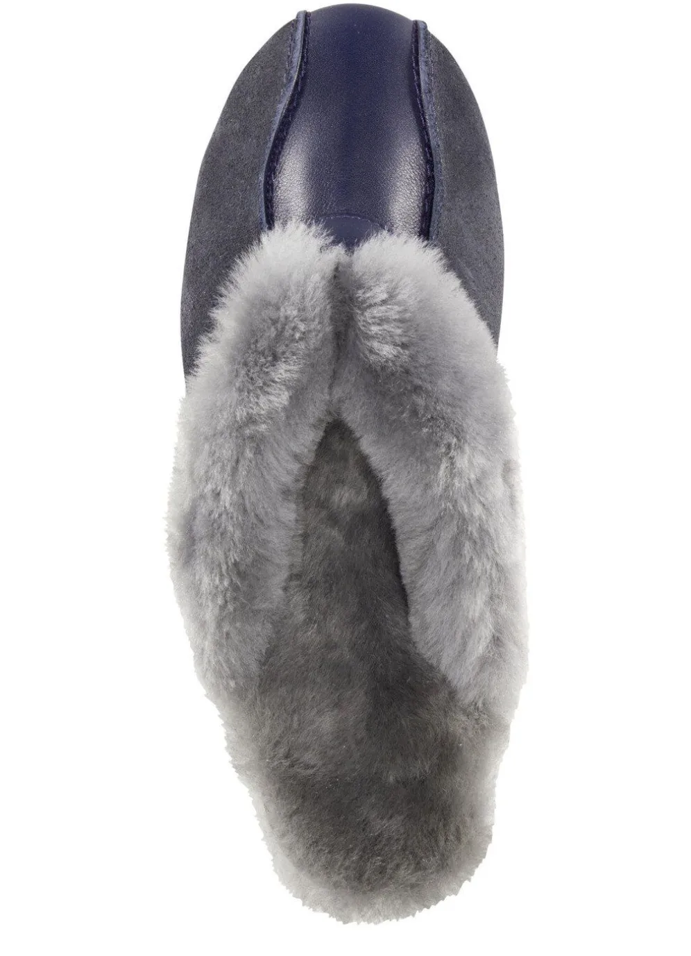 ELENA EDEN-Pantoffel aus Rindleder, mit Kragen sowie Futter und Fußbettbezug aus echtem, gewachsenem Lammfell. Leichte PU-Laufsohle sowie 30 mm Keilabsatz