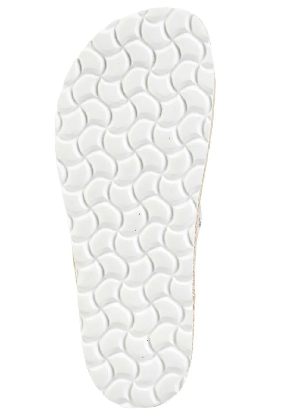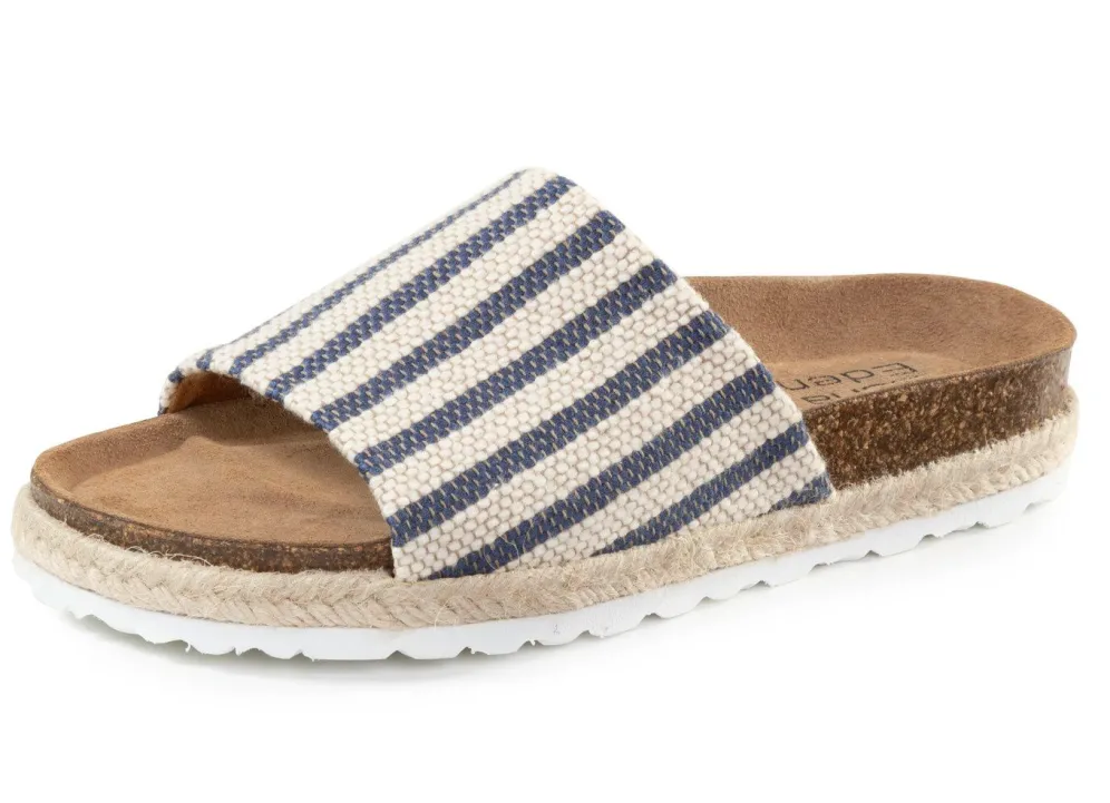 ELENA EDEN-Pantolette aus grob gewebtem Textilmaterial: Weite H, Futter, gepolstertes Lederfußbett, leichte EVA-Profilsohle sowie 10 mm Keilabsatz mit Kordelbezug