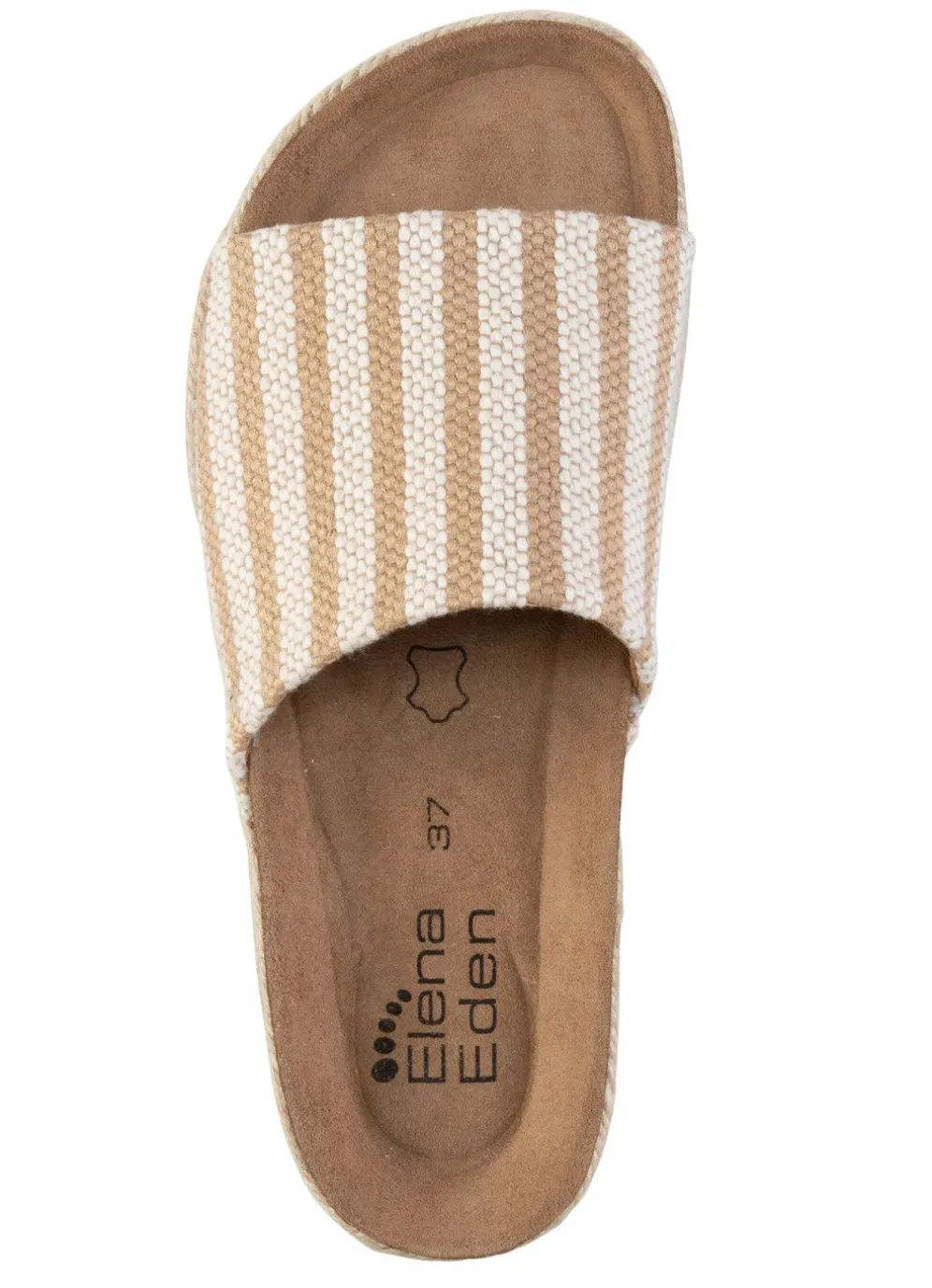 ELENA EDEN-Pantolette aus grob gewebtem Textilmaterial: Weite H, Futter, gepolstertes Lederfußbett, leichte EVA-Profilsohle sowie 10 mm Keilabsatz mit Kordelbezug