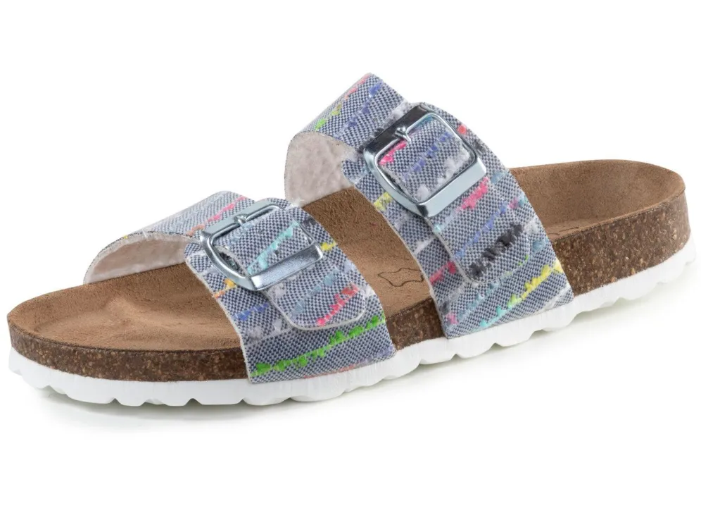 ELENA EDEN-Pantolette aus interessant dessiniertem Synthetik, mit zwei verstellbaren Spangen: Weite H, Futter, gepolstertes Lederfußbett, leichte EVA-Profilsohle sowie 10 mm Keilabsatz