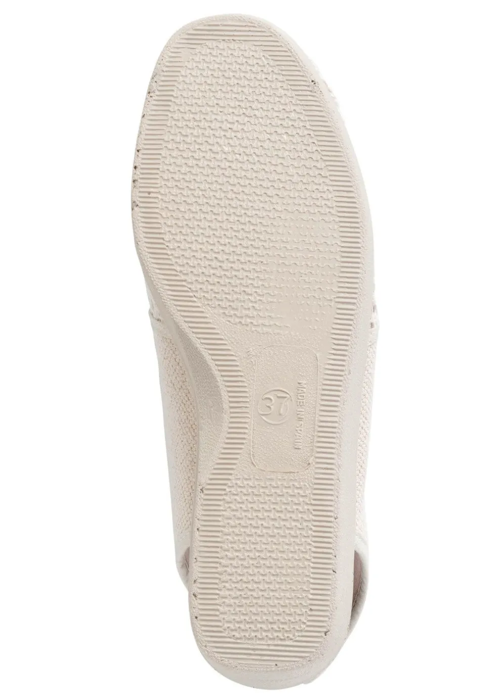 ELENA EDEN-Sandale aus luftigem Meshmaterial und gepolstertem Textil mit dezentem Metallicschimmer: Fersen-Gummizug, Textilfutter, gepolsterte Decksohle, leichte Gummi-Riffelsohle sowie 25 mm Keilabsatz