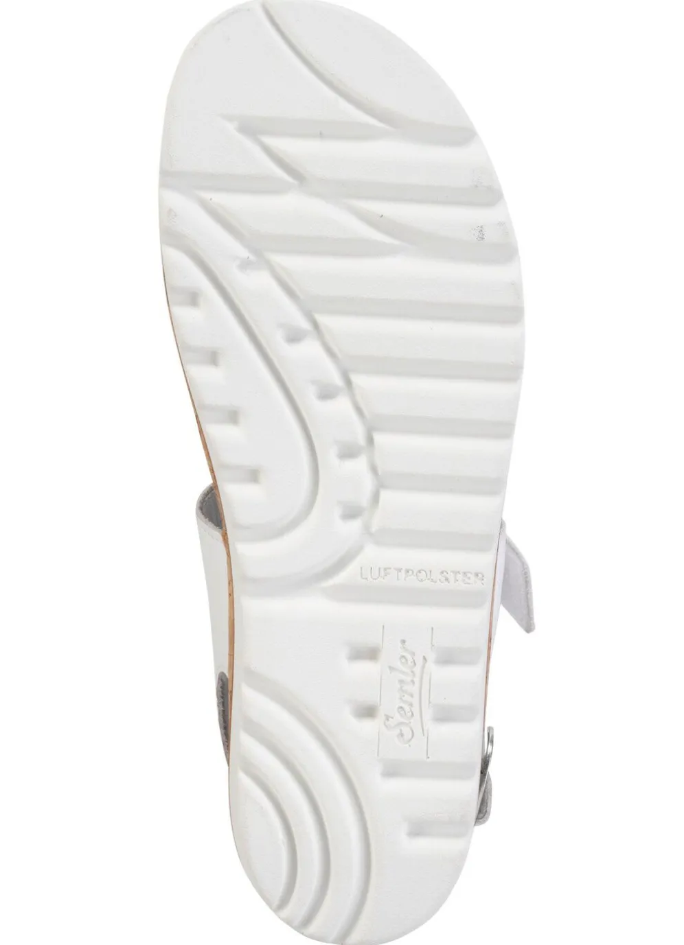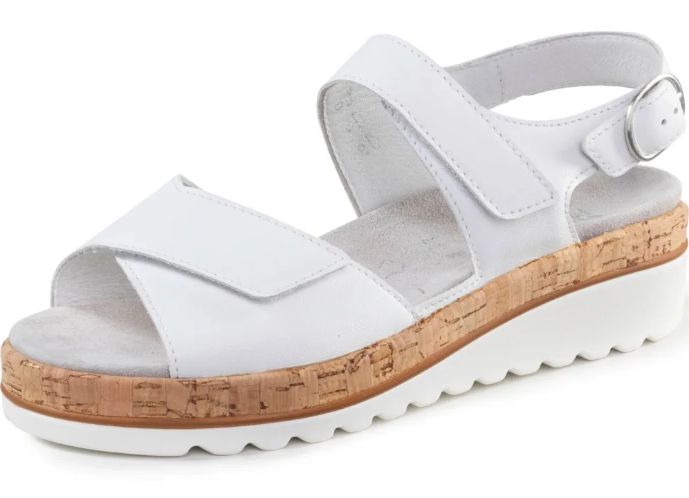 Sandale von ELENA EDEN, aus Nappaleder mit zwei Klettspangen und verstellbarem Fersenriemchen: Weite H, Lederfutter, herausnehmbares Lederfußbett, leichte PU-Luftpolster-Profilsohle mit Korkbezug sowie 20 mm Keilabsatz