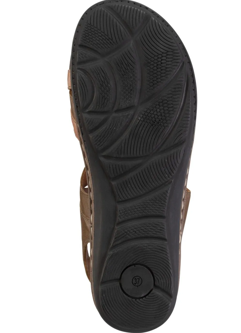 ELENA EDEN-Sandale aus Nappaleder, mit Kontrastbesätzen: Weite G, zwei verstellbare Klettspangen, Lederfutter, weich gepolsterte Lederdecksohle, leichte PU-Laufsohle sowie 15 mm Keilabsatz