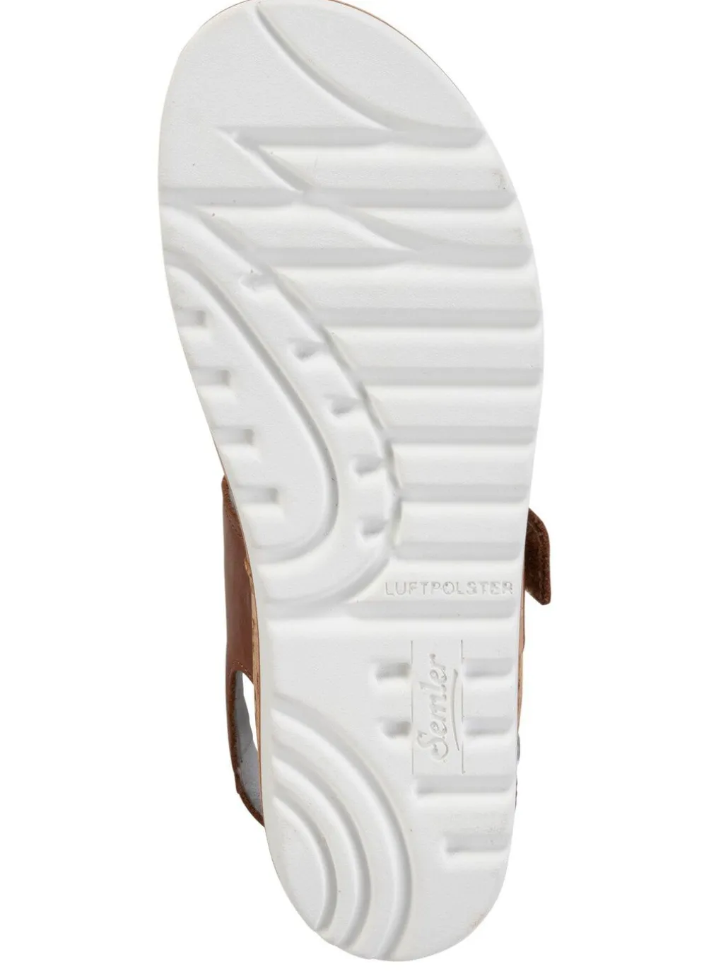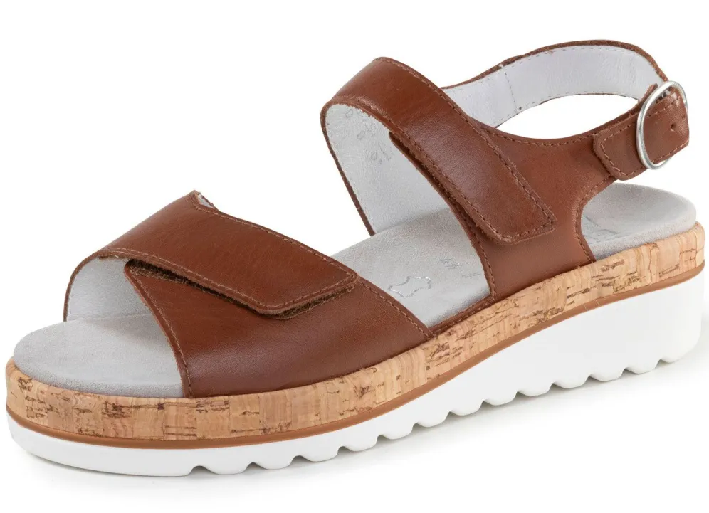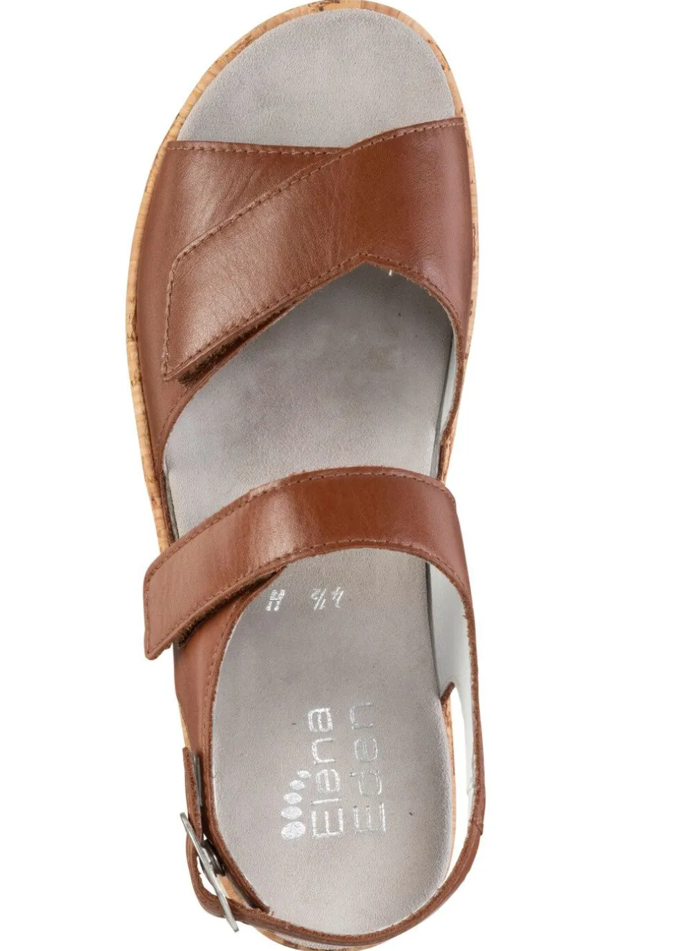Sandale von ELENA EDEN, aus Nappaleder mit zwei Klettspangen und verstellbarem Fersenriemchen: Weite H, Lederfutter, herausnehmbares Lederfußbett, leichte PU-Luftpolster-Profilsohle mit Korkbezug sowie 20 mm Keilabsatz