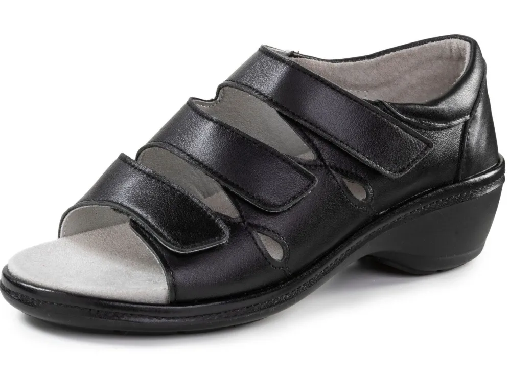 ELENA EDEN-Sandale aus teilweise schimmerndem Nappaleder: Weite H, drei verstellbare Klettspangen, Futter, herausnehmbares Fußbett, leichte PU-Laufsohle sowie 15 mm Absatz