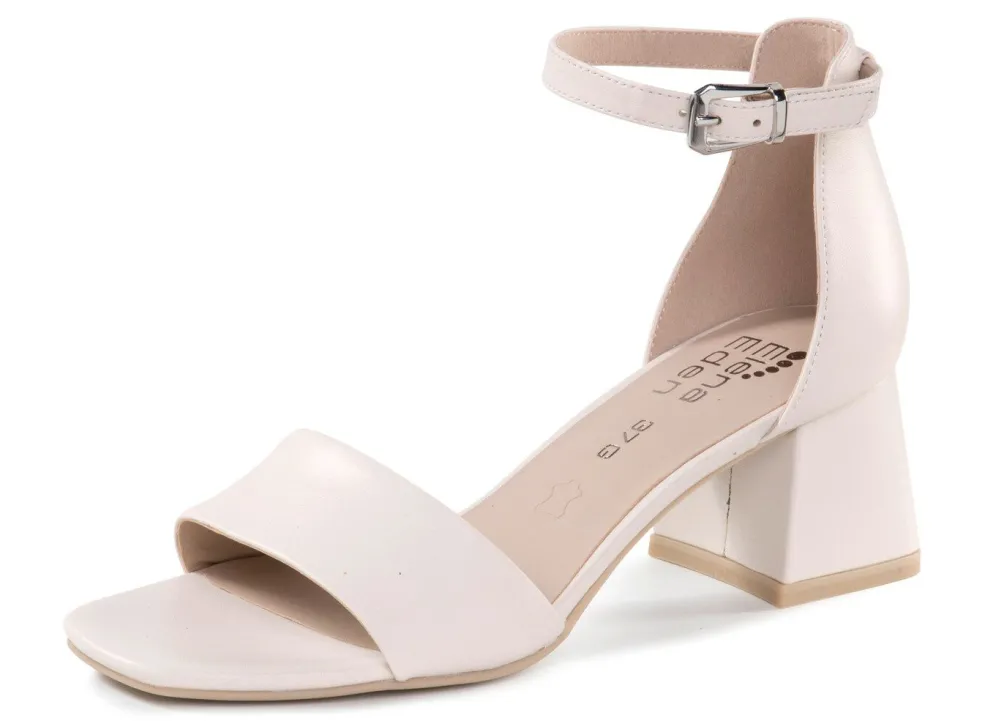 Trendige ELENA EDEN-Sandalette in Ecru aus bestem Nappaleder: Weite G, verstellbare Knöchelspange mit verdecktem Gummizug, Futter, gepolsterte Lederdecksohle, Synthetik-Riffelsohle sowie lederbezogener 55 mm Absatz