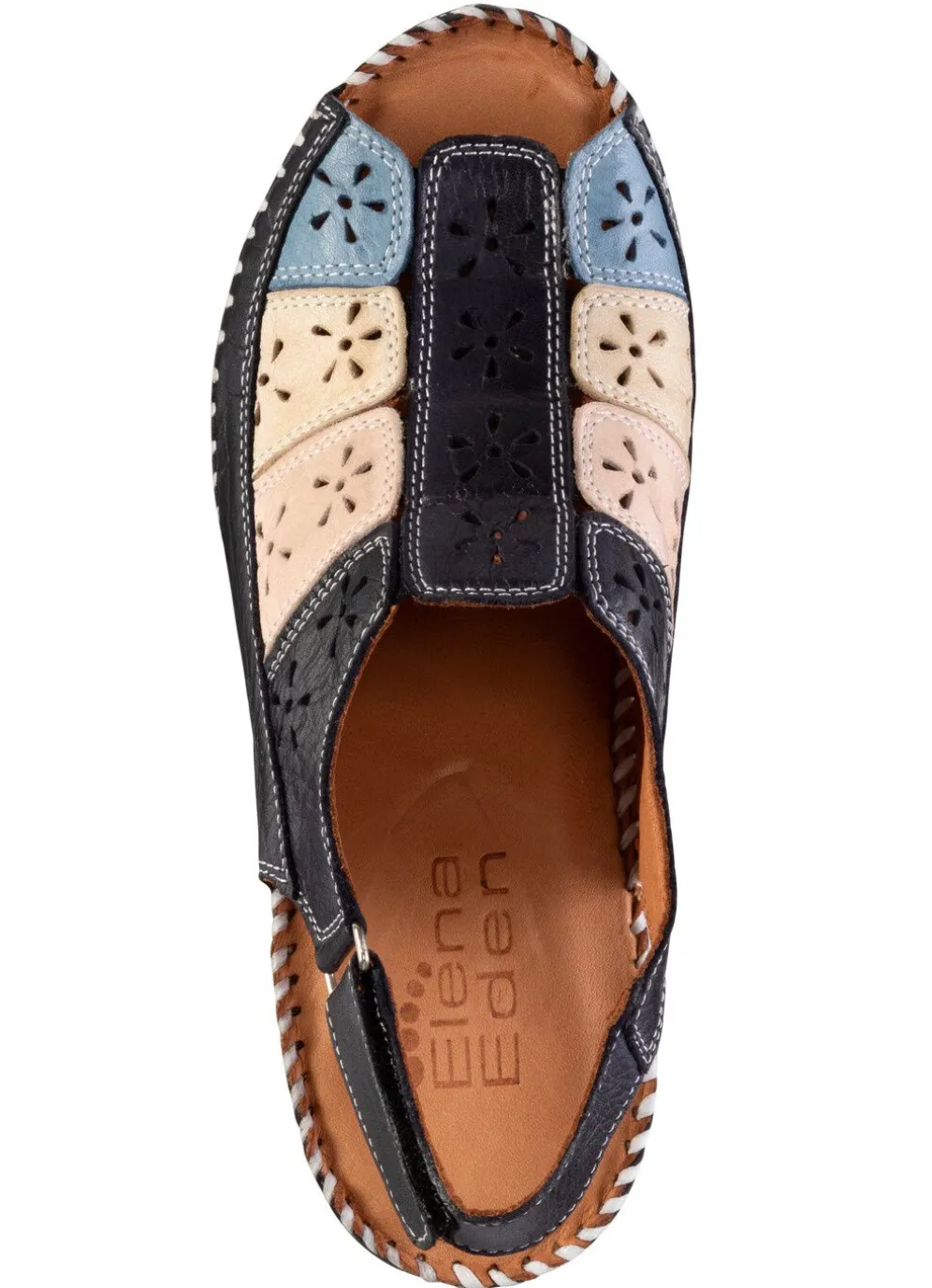 ELENA EDEN-Sandalette aus weichem, perforiertem Nappaleder, mit verstellbarer Klettspange: Lederfutter, gepolsterte Lederdecksohle, superleichte Synthetik-Riffelsohle sowie 40 mm Keilabsatz