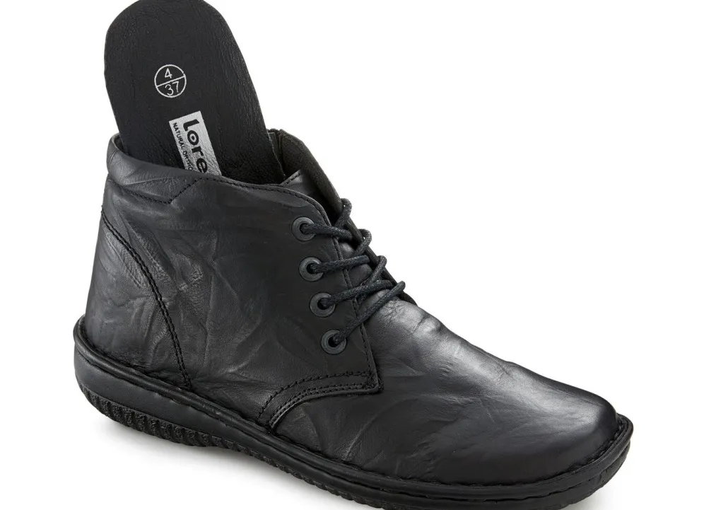 Boots von ELENA EDEN, aus Nappaleder mit Knitter-Struktur, in Multicolor aus glänzend geprägtem, floral bedrucktem Leder: Weite G, Schnürung, Innenreißverschluss, gepolstertes Textilfutter, herausnehmbares Lederfußbett, superleichte PU-Profilsohle, 25 mm Keilabsatz. Schafthöhe ca. 10 cm
