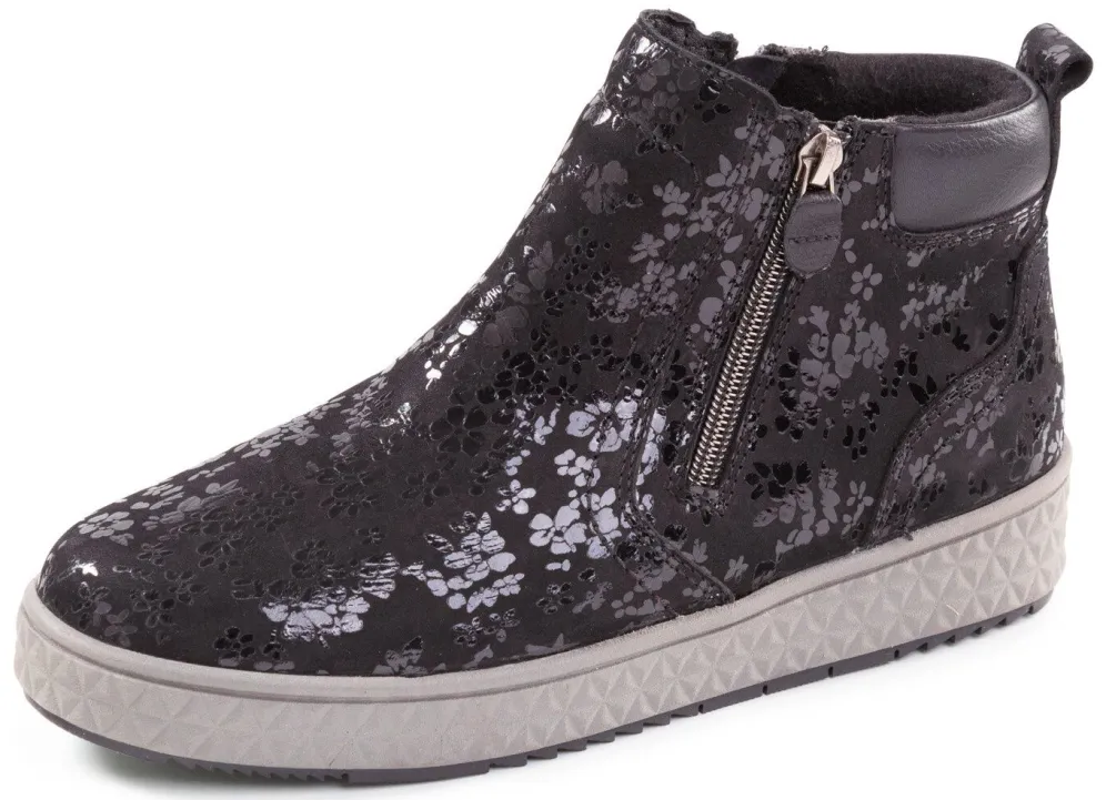 Boots von ELENA EDEN, aus hochwertigem Leder mit zart glänzender Blüten-Prägung: Weite H, zwei seitliche Reißverschlüsse, Futter und herausnehmbares Fußbett aus Textil, leichte TR-Laufsohle sowie 10 mm Keilabsatz. Schafthöhe ca. 10 cm