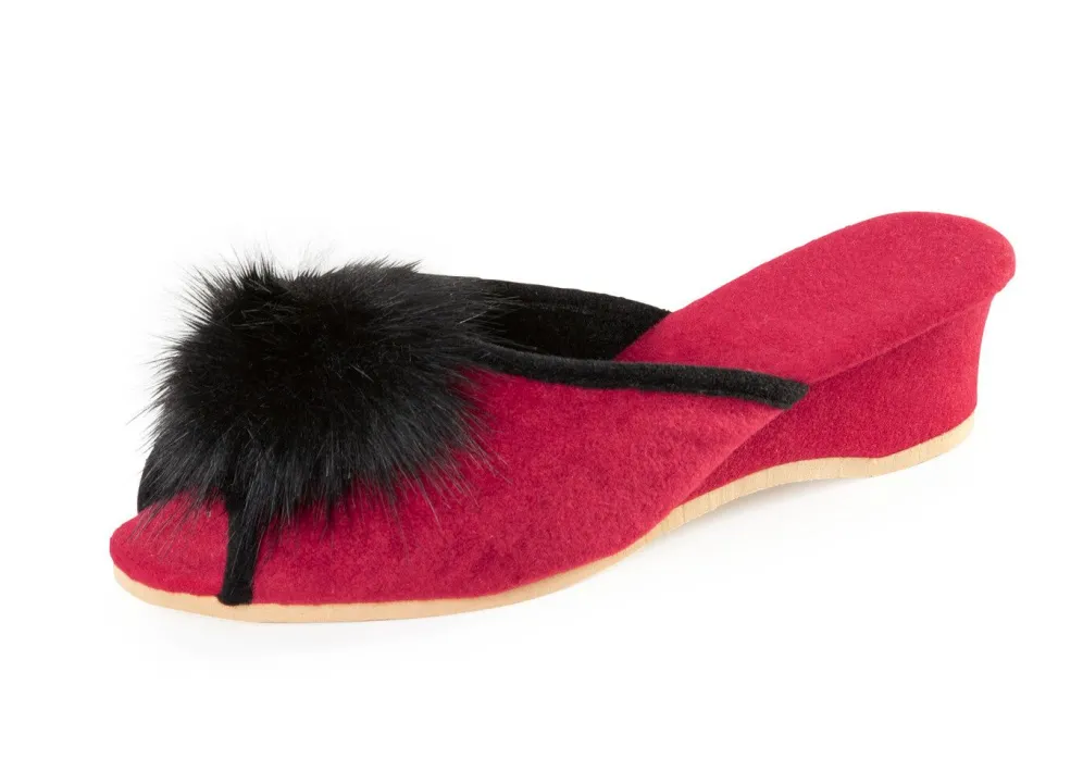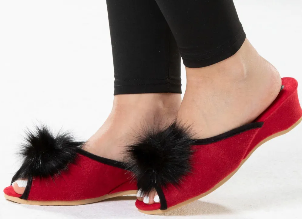 ELENA EDEN, schicke Damen-Pantoletten, Weite G, mit Kunstfellpompon