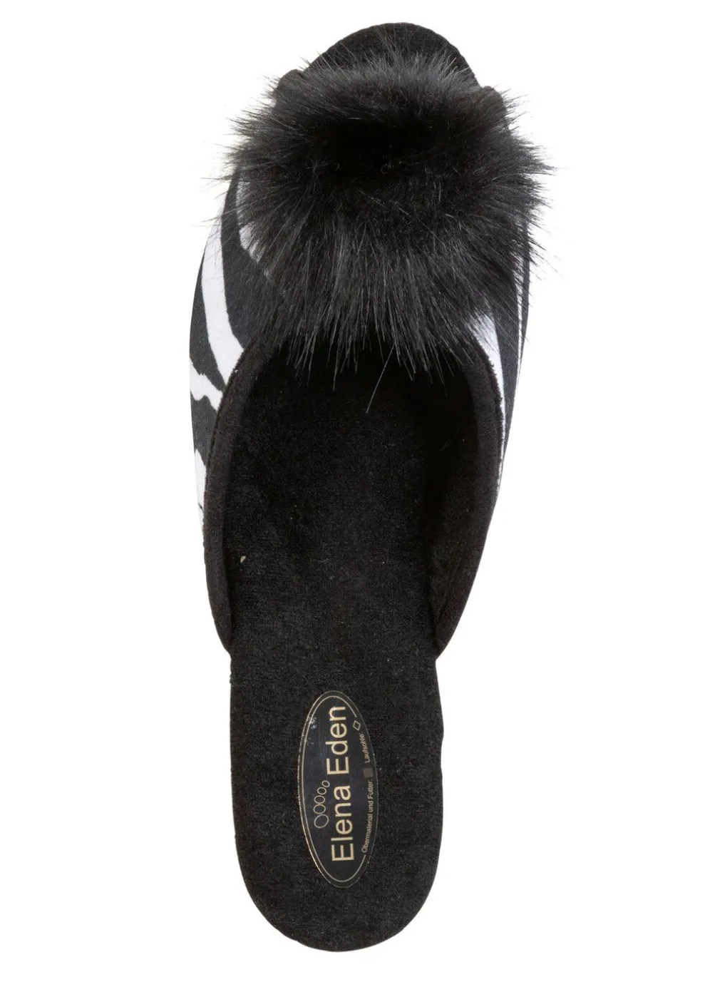 ELENA EDEN, schicke Damen-Pantoletten, Weite G, mit Kunstfellpompon