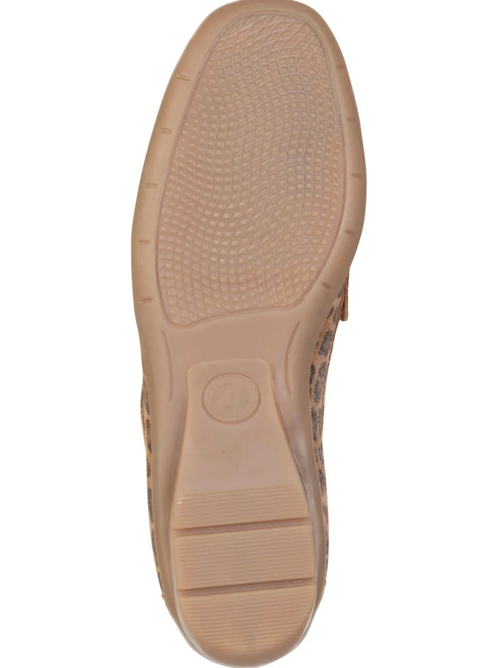 Klassische Slipper von ELENA EDEN aus genarbtem Nappaleder, in Braun aus geprägtem Veloursleder mit Leo-Druck: Weite G, seitliche Gummizüge, Futter, herausnehmbares Lederfußbett, leichte TR-Riffelsohle sowie 15 mm Absatz