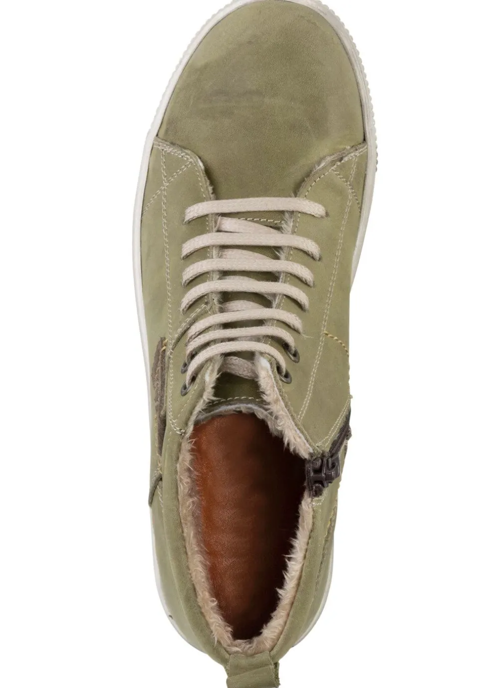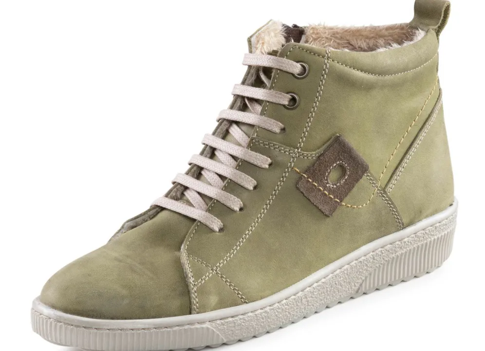 Schnür-Bootie von ELENA EDEN, aus Nubukleder, mit Leder-Applikation: Weite G, praktischer Innenreißverschluss, Warmfutter aus 100% Polyester, herausnehmbares Lederfußbett, leichte PU-Riffelsohle sowie 10 mm Keilabsatz. Schafthöhe ca. 10 cm