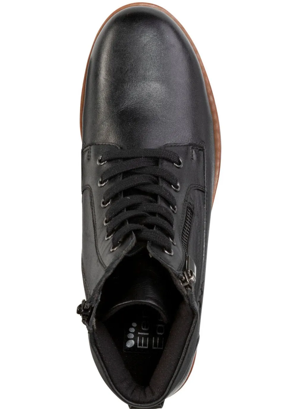 Schnür-Bootie von ELENA EDEN, aus teilweise schattiertem Nappaleder, mit gepolstertem Schaftrand: Weite G, zwei seitliche Reißverschlüsse, Textilfutter, gepolsterte Decksohle, leichte TPR-Laufsohle sowie 15 mm Keilabsatz. Schafthöhe ca. 10 cm