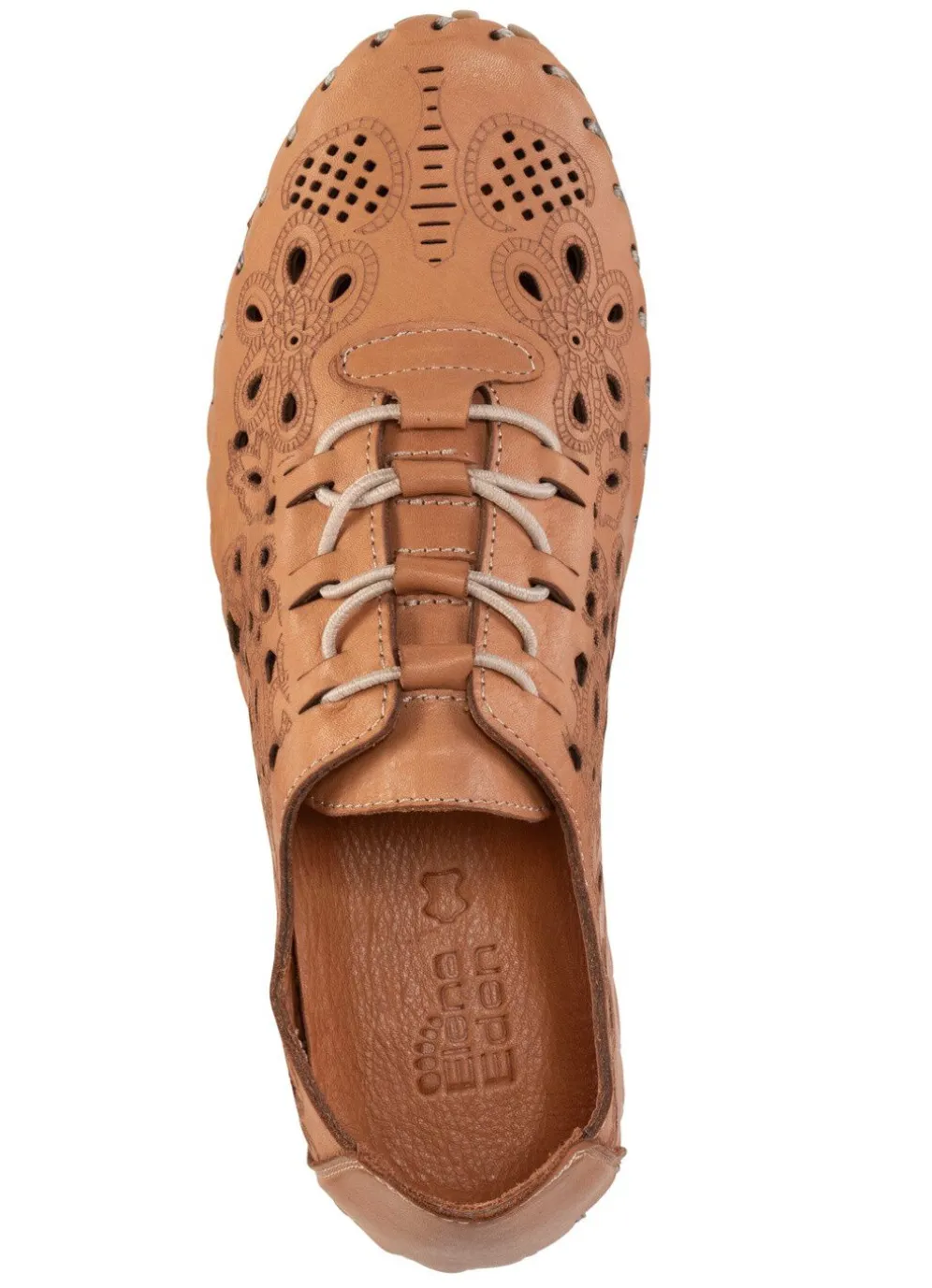 Luftig perforierter Slipper von ELENA EDEN, aus weichem Nappaleder mit Prägung: Elastik-Schnürung, Lederfutter, gepolsterte Lederdecksohle, superleichte TPU-Noppensohle sowie 10 mm Keilabsatz