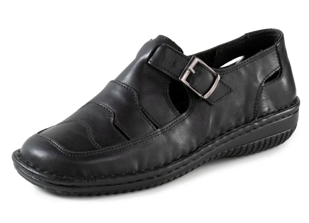 Luftig durchbrochener Slipper von ELENA EDEN, aus Nappaleder: Weite G, verstellbare Schließe mit verdecktem Gummizug, Futter, herausnehmbares Lederfußbett, leichte PU-Riffelsohle sowie 20 mm Keilabsatz