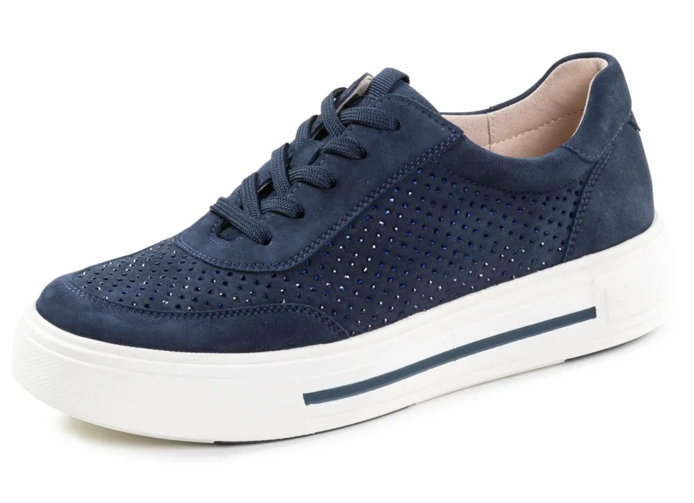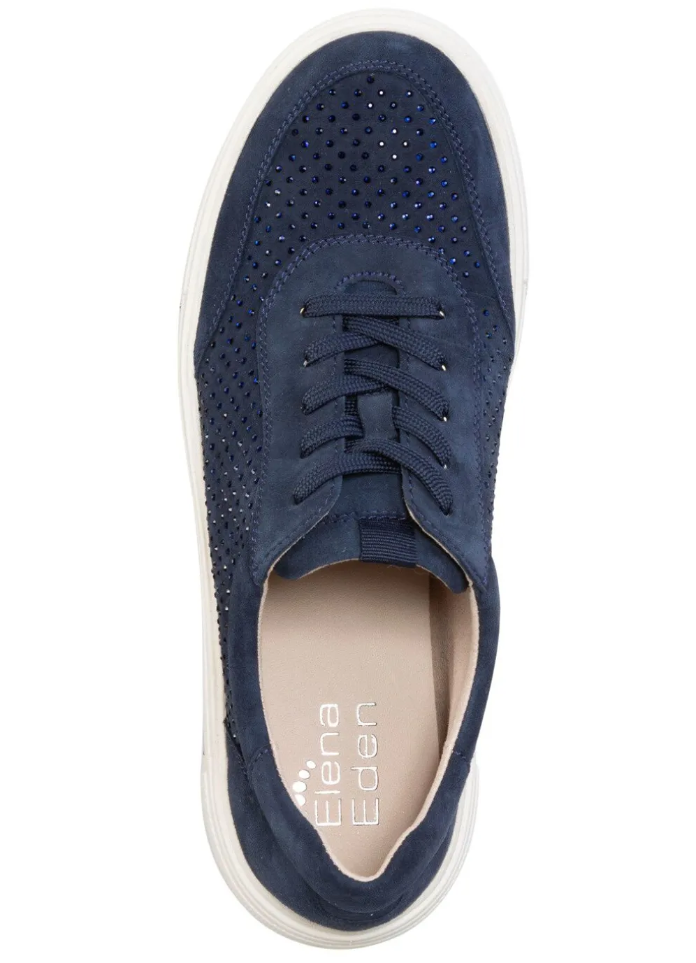 ELENA EDEN-Sneaker aus feinem Veloursleder, mit zart funkelnden Glitzersteinchen besetzt: Weite G, Schnürung, Futter, Lederdecksohle sowie superleichte 30 mm EVA-Plateausohle