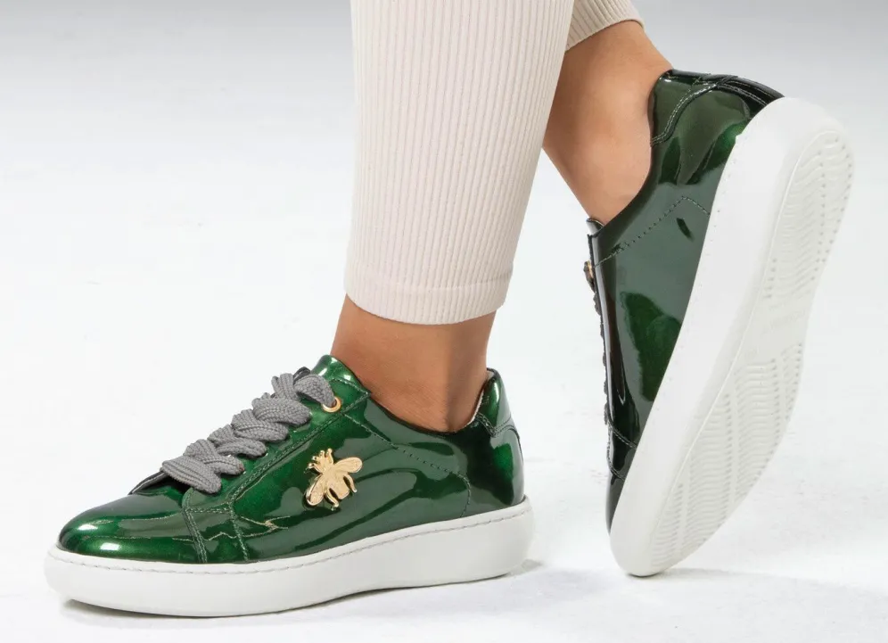 Trendstarker ELENA EDEN-Sneaker aus teilweise krokogeprägtem Lackleder, mit niedlichem Metallschmuck und Schnürung: Weite G, Futter, herausnehmbare Decksohle, leichte, flache PU-Riffelsohle