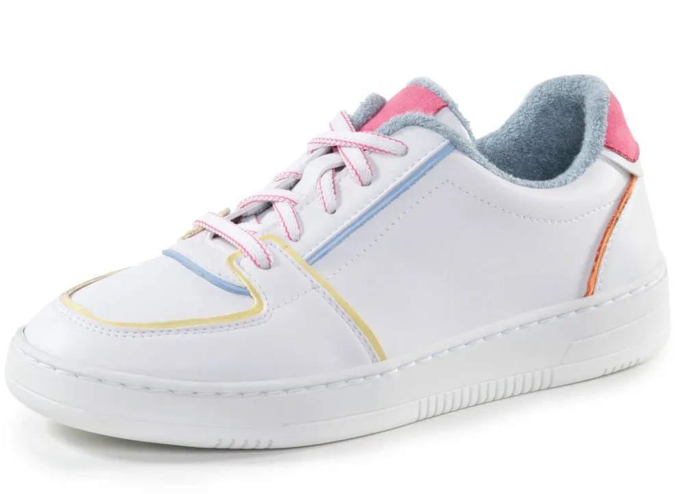 ELENA EDEN-Sneaker in Weiß-Bunt aus Nappaleder, mit Schnürung: Weite G, gepolstertes Frottee-Futter, herausnehmbares Fußbett, leichte TR-Laufsohle sowie 10 mm Keilabsatz
