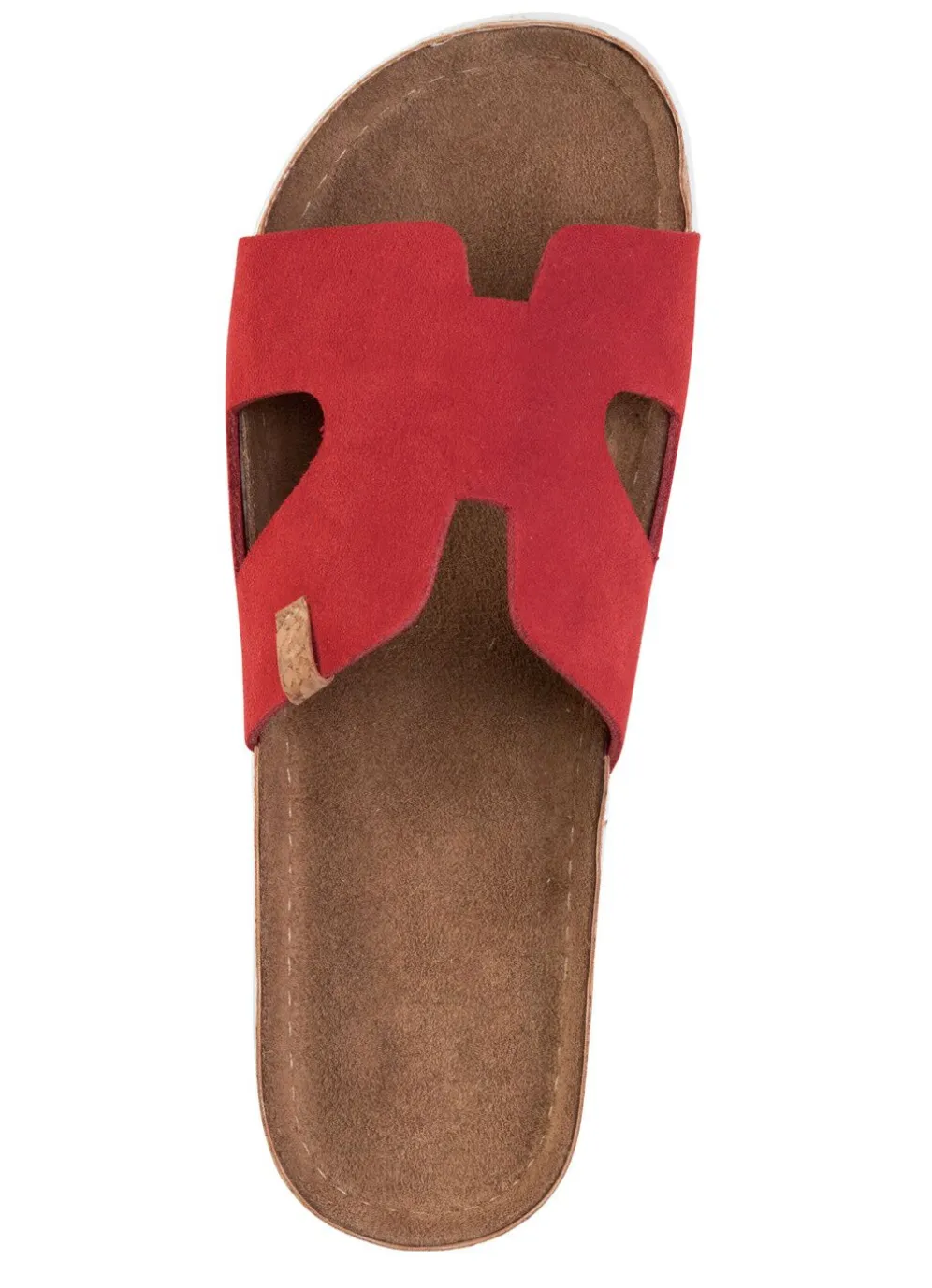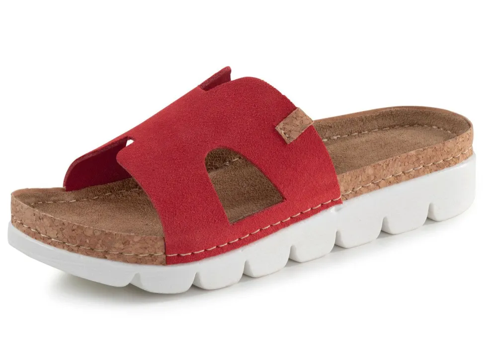 Pantoletten von ELENA EDEN aus Veloursleder: gepolstertes Lederfußbett mit korkbezogenem Rahmen, leichte PU-Profilsohle, 10 mm Keilabsatz
