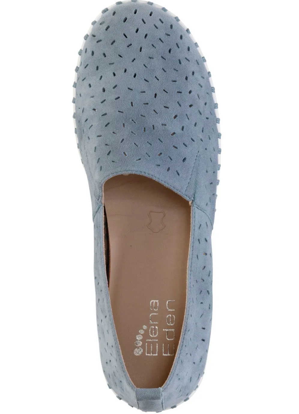 Slipper von ELENA EDEN, aus luftig perforiertem Veloursleder, mit seitlichen Gummizügen: Weite H, Futter, herausnehmbares Lederfußbett, leichte Synthetik-Profilsohle sowie 10 mm Keilabsatz