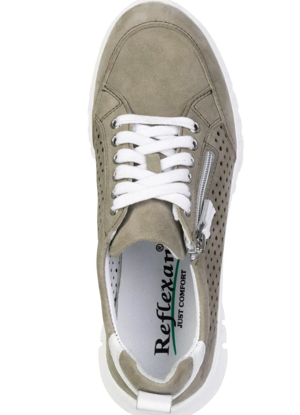 Luftig perforierte Sneaker von ELENA EDEN aus Nappa- oder Veloursleder: Weite H, Schnürung, seitlicher Reißverschluss, ledergefüttertes Quartier, herausnehmbares Lederfußbett, superleichte Synthetik-Laufsohle sowie 20 mm Keilabsatz