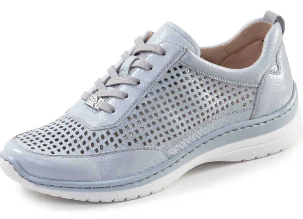 Sneaker von ELENA EDEN aus luftig perforiertem Hirschleder, mit Schnürung: Weite H, gefüttertes Quartier, herausnehmbares Lederfußbett, leichte PU-Laufsohle sowie 25 mm Keilabsatz