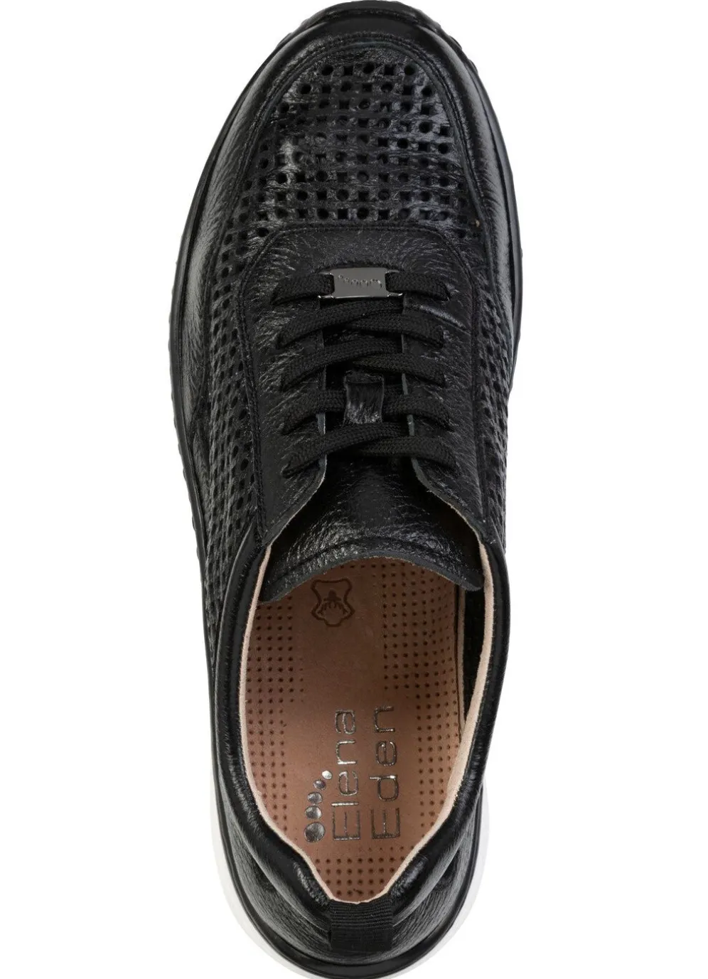 Sneaker von ELENA EDEN aus luftig perforiertem Hirschleder, mit Schnürung: Weite H, gefüttertes Quartier, herausnehmbares Lederfußbett, leichte PU-Laufsohle sowie 25 mm Keilabsatz