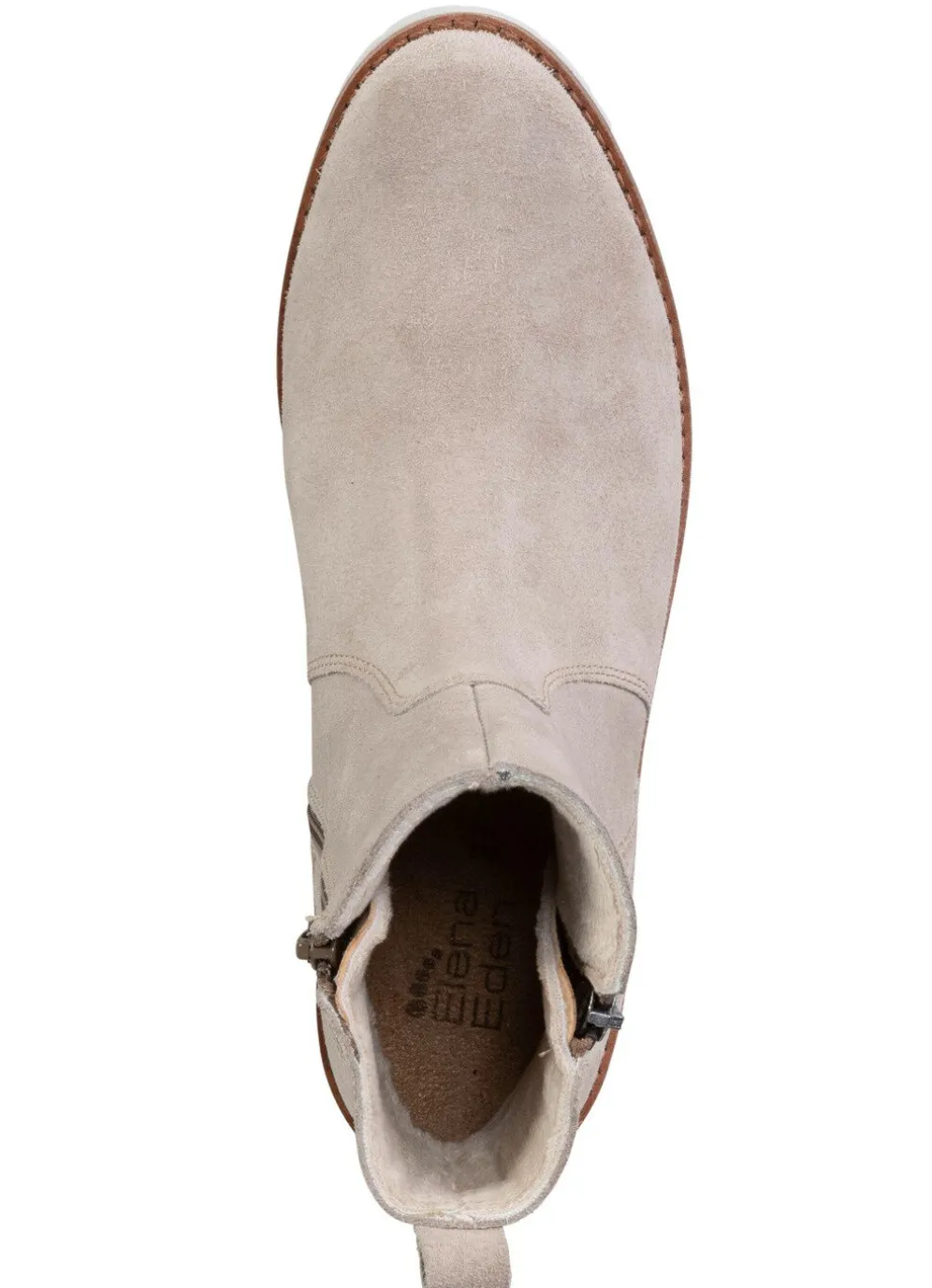Stiefelette von ELENA EDEN aus Veloursleder, in Schwarz aus genarbtem Nappaleder, mit zwei praktischen Seitenreißverschlüssen: Weite G, wärmendes Textilfutter, herausnehmbares Fußbett, leichte PU-Profilsohle sowie 15 mm Absatz. Schafthöhe ca. 13 cm