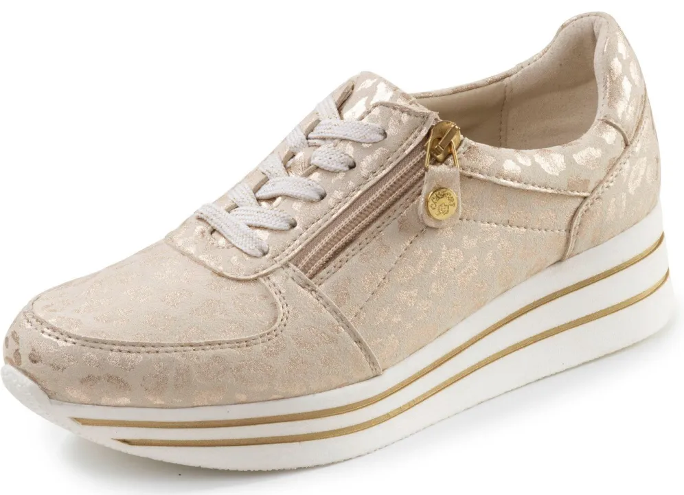 Sneaker von ELENA EDEN aus effektvoll bedrucktem Veloursleder, mit Schnürung: Weite G, seitlicher Reißverschluss, Futter, herausnehmbares Fußbett, leichte TR-Laufsohle sowie 15 mm Keilabsatz