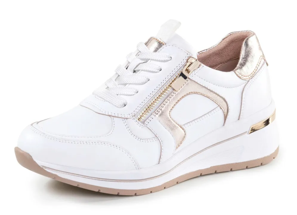 Sneaker von ELENA EDEN, im Material-Mix aus Nappa-, Velours- und Lackleder in diversen Kombinationen: Weite H, Schnürung und Seitenreißverschluss, Textilfutter, herausnehmbares Fußbett, leichte TPR-Profilsohle sowie 35 mm Keilabsatz