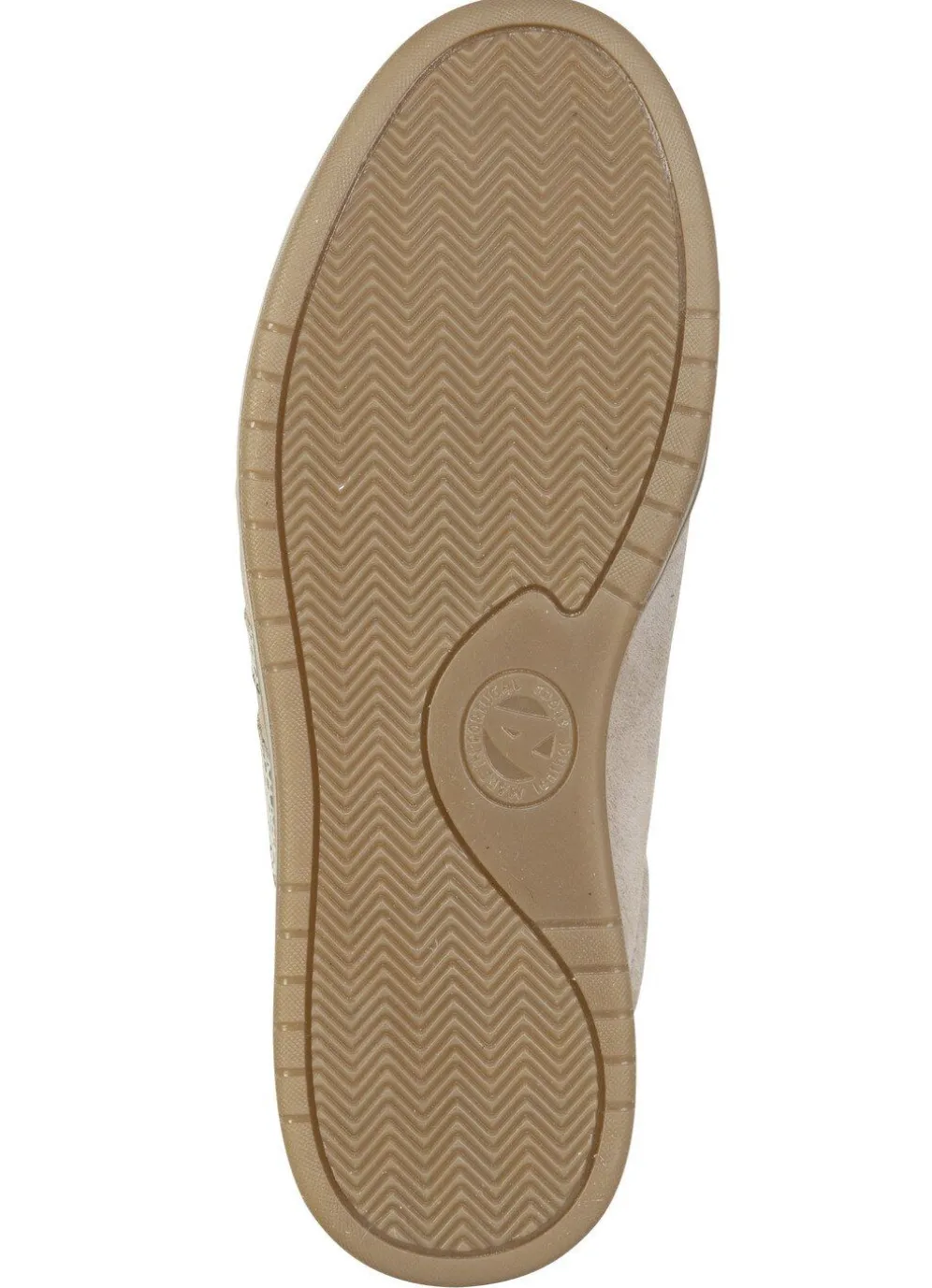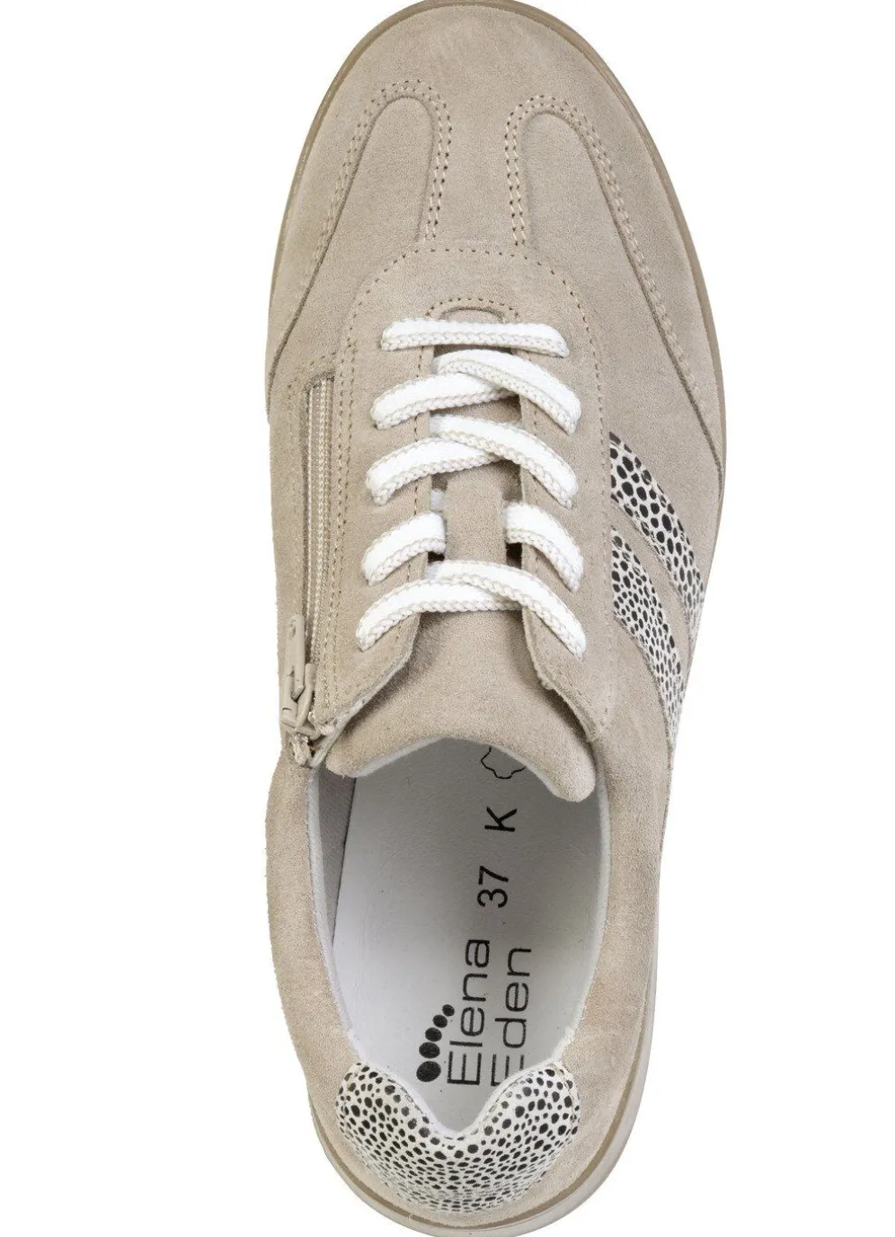 Trendige Sneaker von ELENA EDEN aus Veloursleder mit effektvoll geprägten Besätzen: Weite K, Schnürung und Seitenreißverschluss, Textilfutter, herausnehmbares Lederfußbett sowie TR-Riffelsohle mit 10 mm Keil
