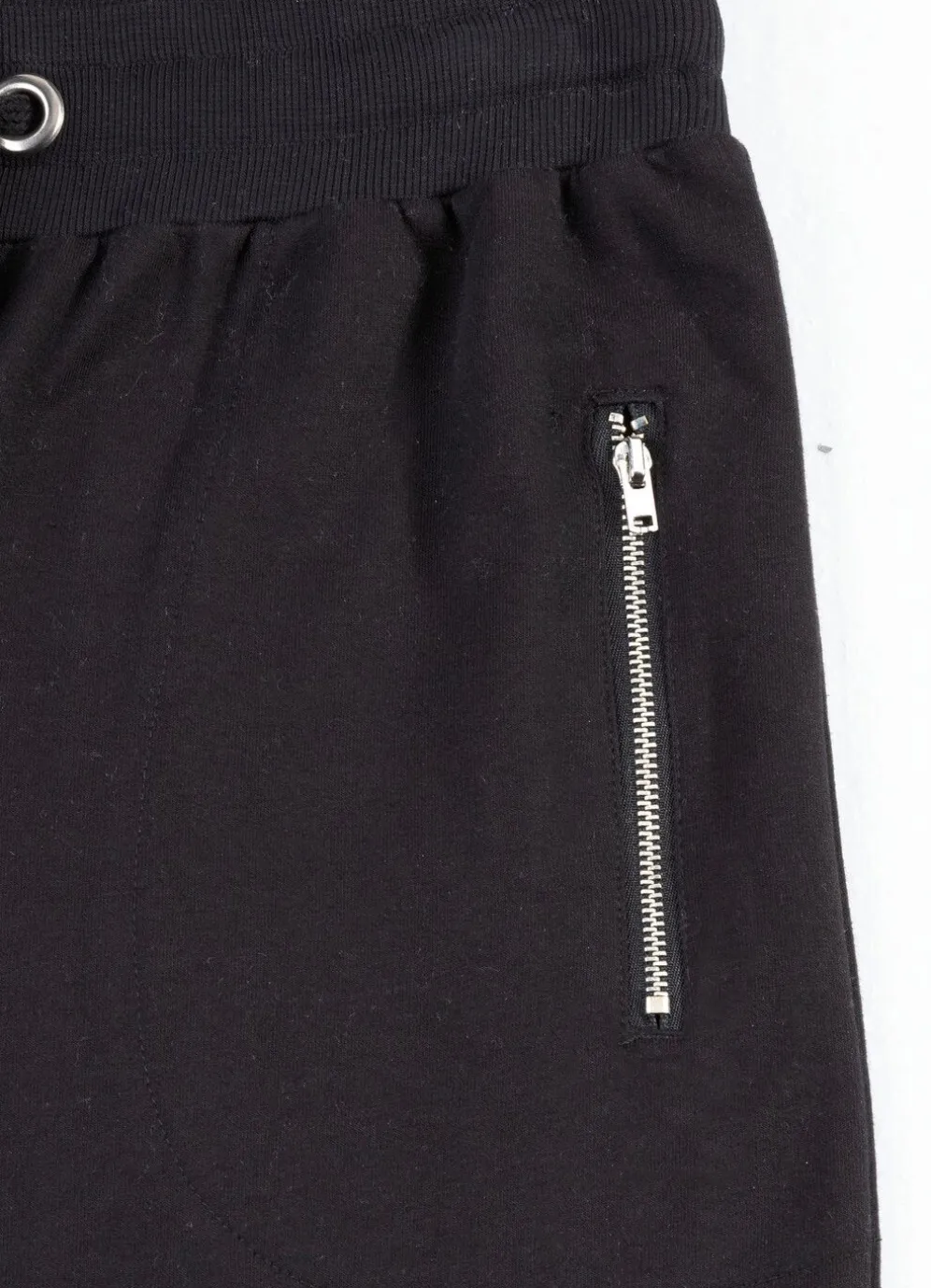Sportive Freizeithose: Dehnbund mit Kordelzug, zwei Reißverschluss-Taschen sowie elastische Beinabschlüsse.