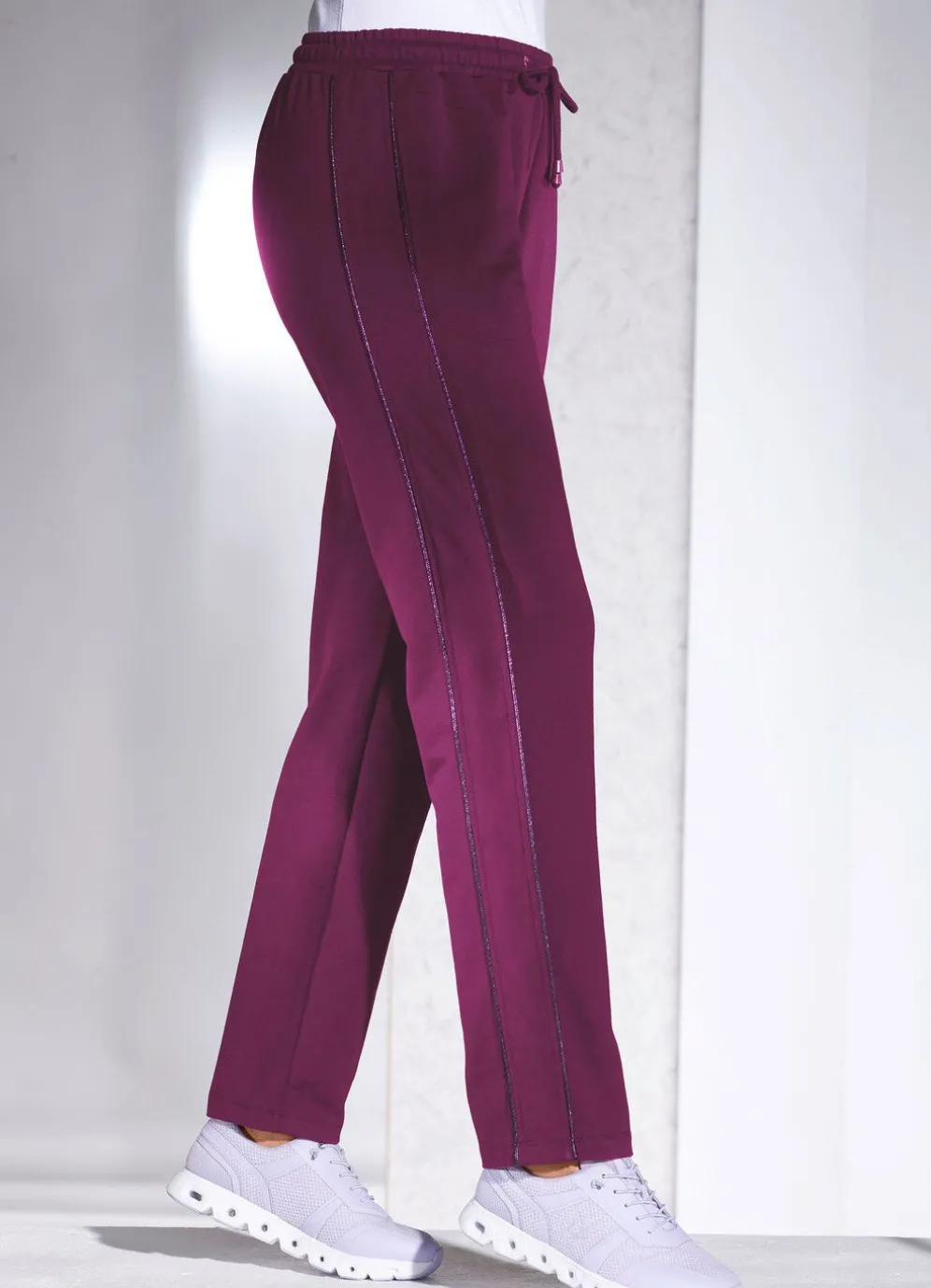 Lässige Freizeithose mit Durchzugsband und Stopper im Dehnbund, zwei Seitentaschen sowie seitlichen Paspeln.