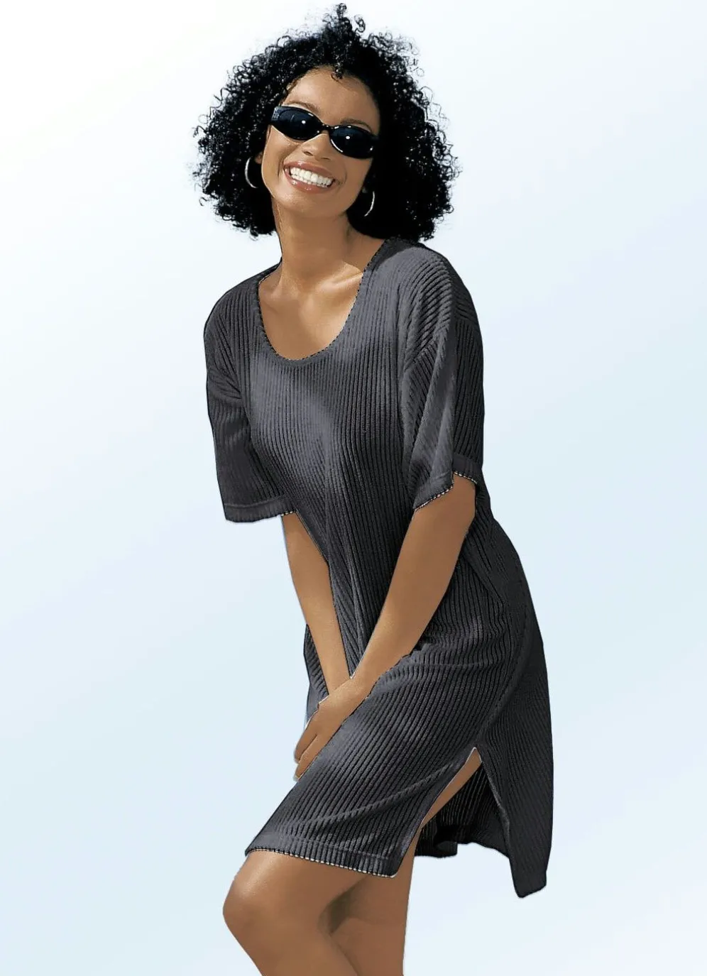 Frottier-Kleid mit Streifenstruktur und kurzen Ärmeln